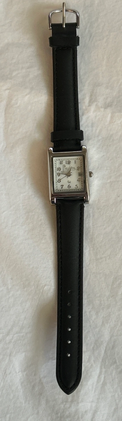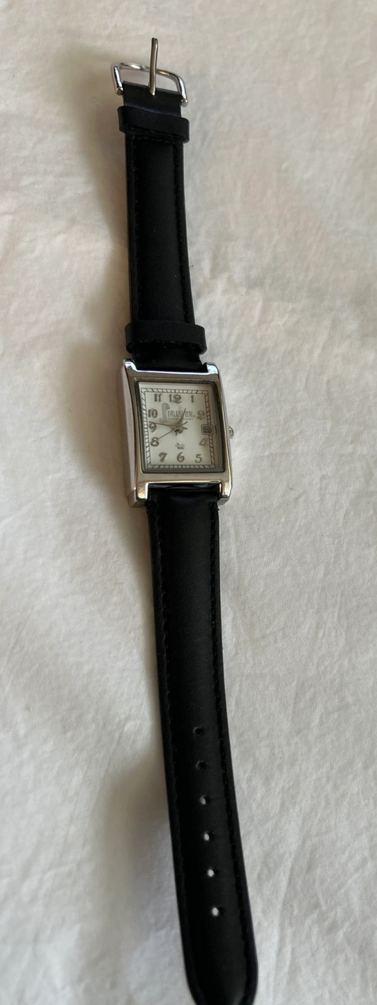 Vintage Women's rectangular watch. Silver-toned case, white face, black leather band. Features Fallsview Casino Resort logo. Quartz movement. Never used. Needs new battery. Smoke/Pet free home. Cash & Pick up only