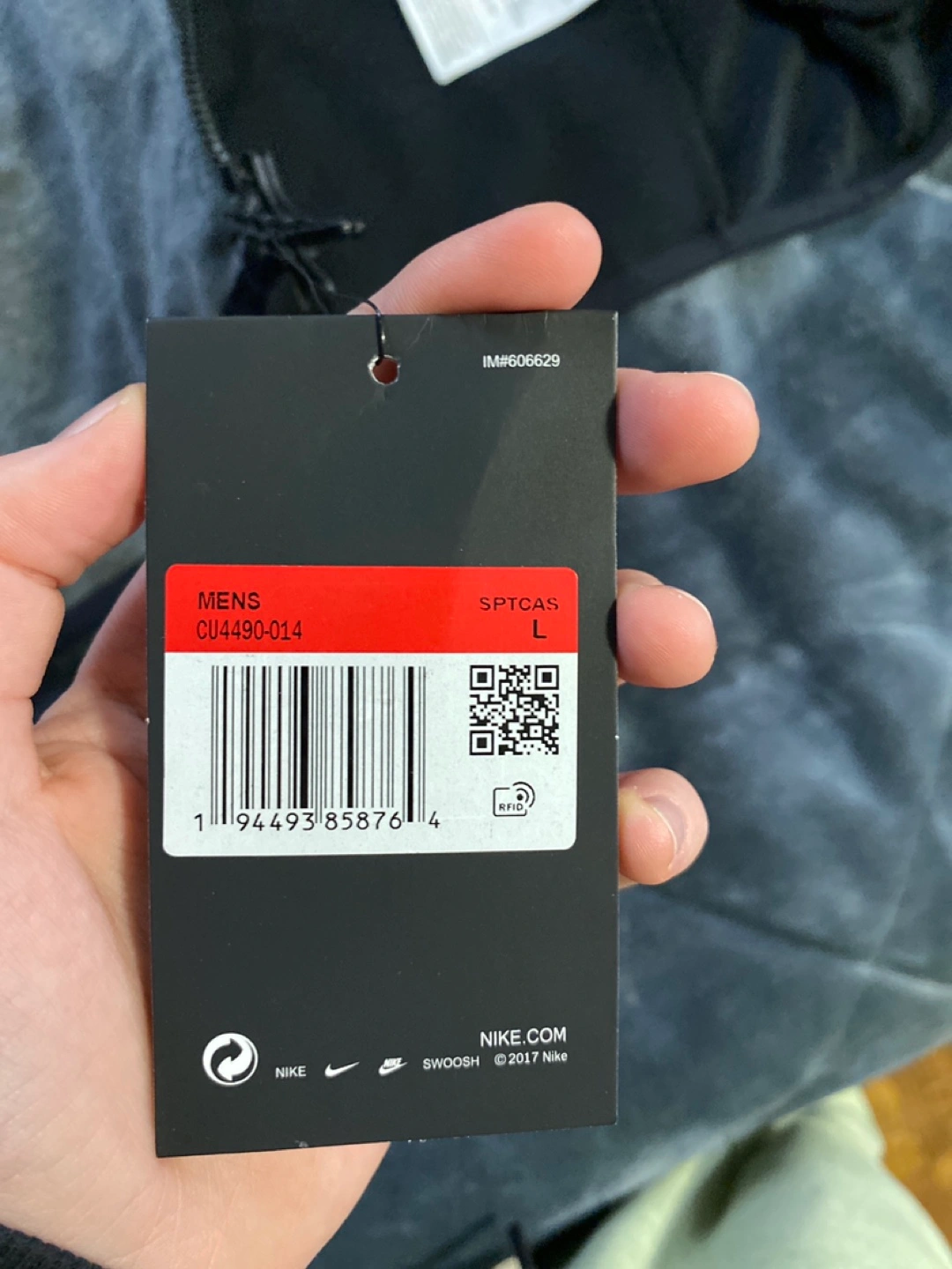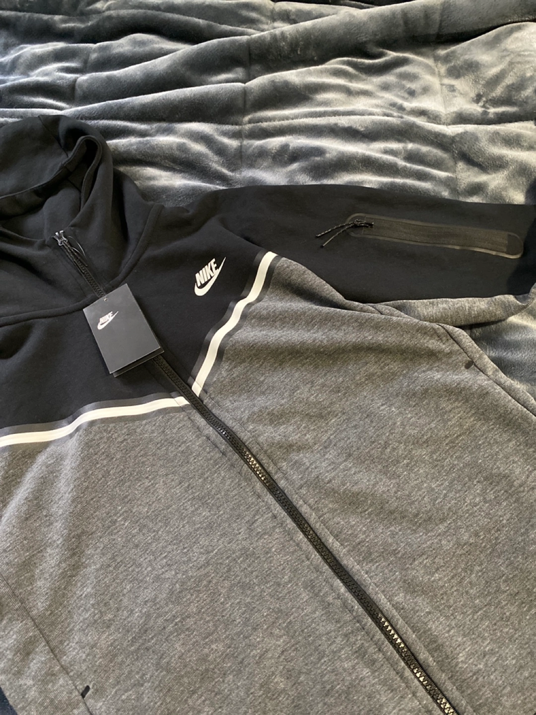 Men's Nike Tech Fleece hoodie. Size large. Grey and black colour block design. Full zip closure. Hooded. Pockets. New with tags.