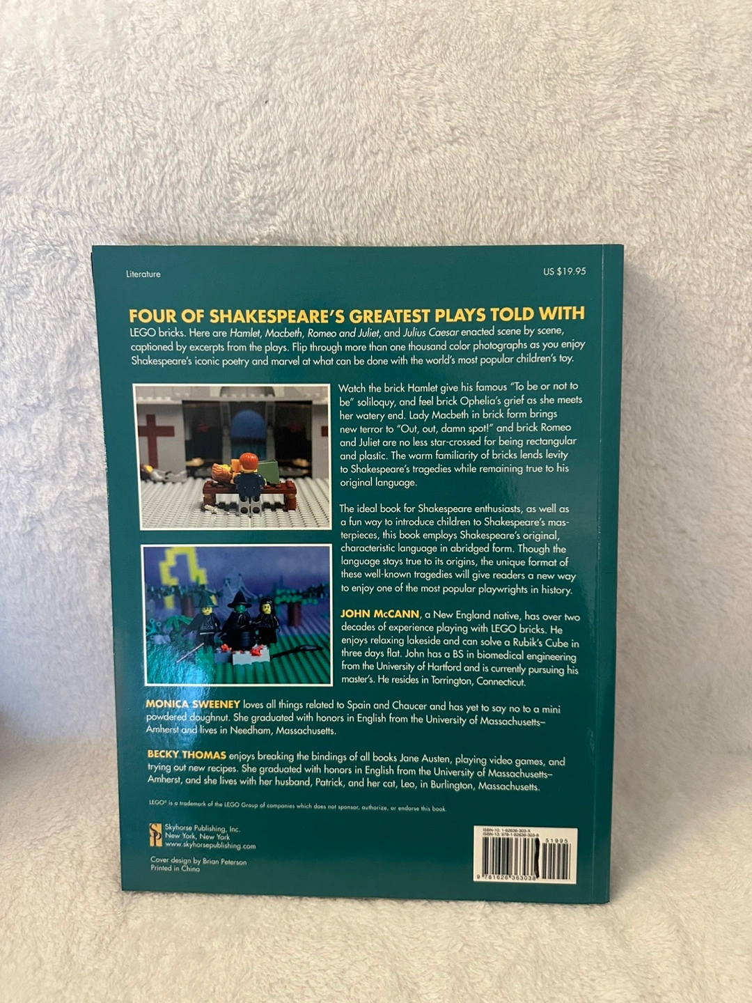 Book featuring LEGO recreations of Hamlet, Macbeth, Romeo and Juliet, and Julius Caesar. Includes construction and photography by John McCann. Edited and narrated by Monica Sweeney and Becky Thomas. Great for LEGO and Shakespeare enthusiasts.