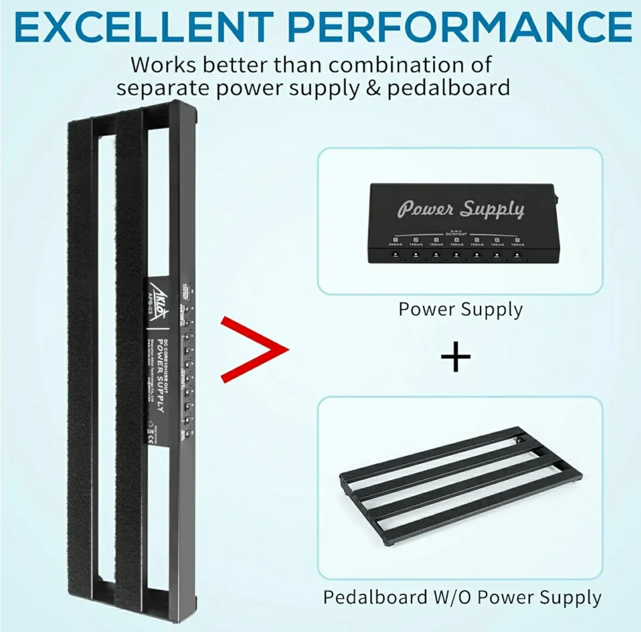 Brand New AKLOT Guitar Pedal Board with Built-in Power Supply Guitars Effect Pedalboard Aluminium Alloy Power Supply 19" x 5" with Bag, Pedal Cable Double Sided Adhesive