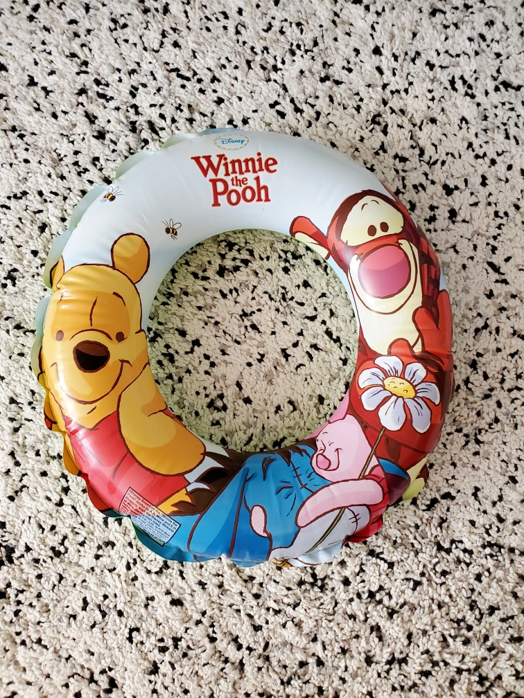 Adorable Winnie the Pooh pool float. Features Winnie the Pooh, Piglet, and Tigger. Fun for kids. Great for the pool or beach. Available for pick-up at Bayview Village
