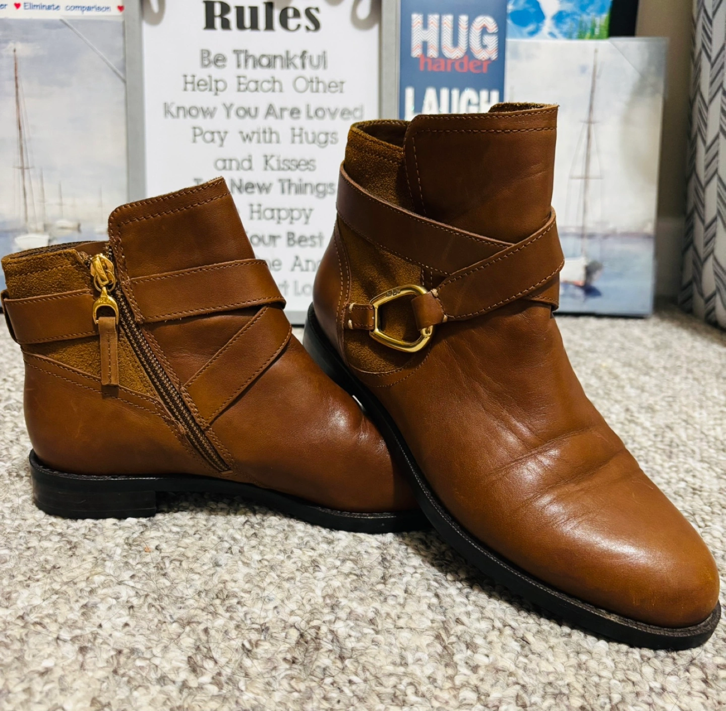 Lauren Ralph Lauren Brown Leather Ankle Boots Size 5.5B