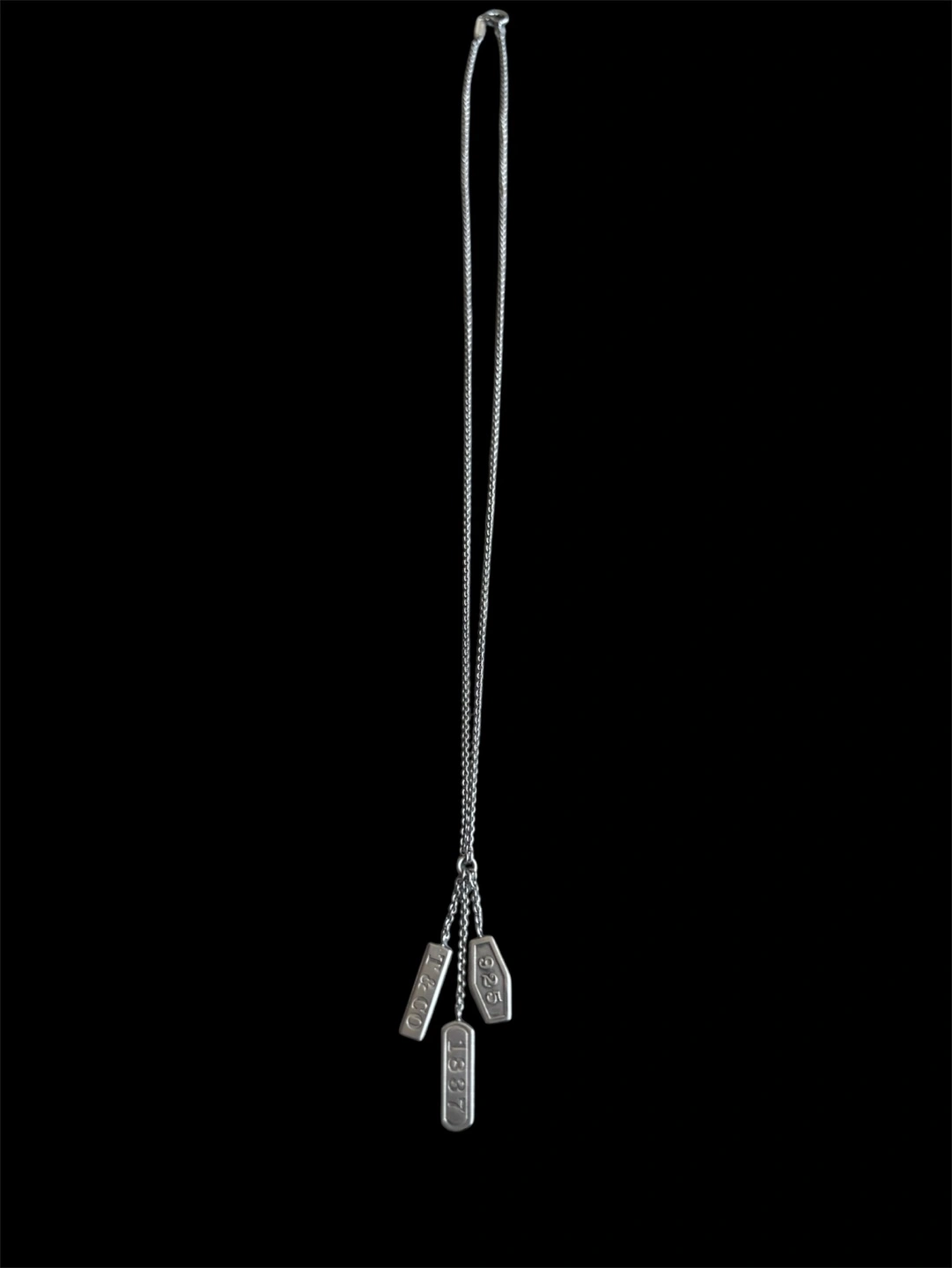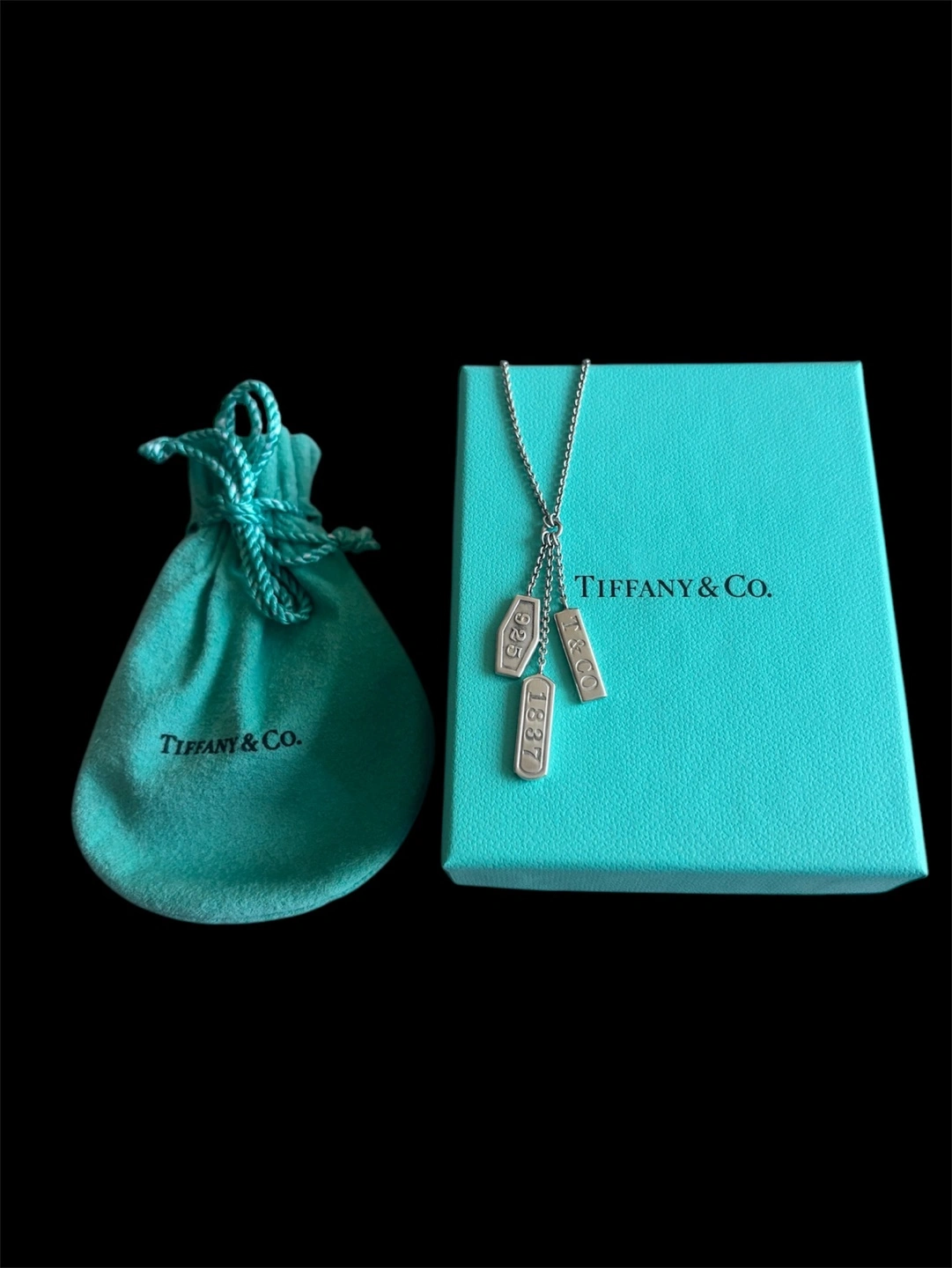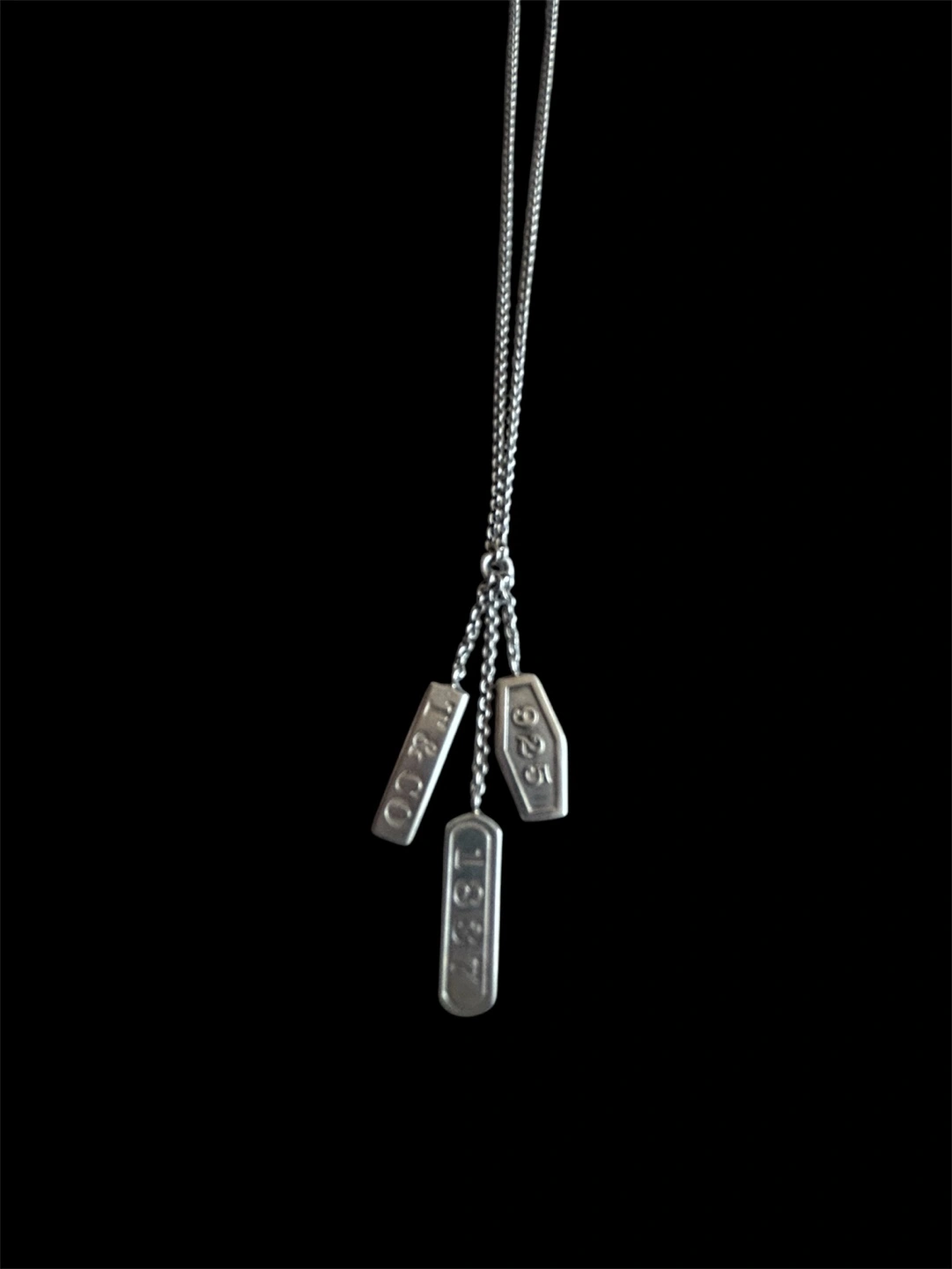 242Silver necklace, three tags, dates and Tiffany & Co. engraved. Comes with box and pouch. Chain length 46cm. Pre-owned. If add is up it’s still available. Meet up in front of Orpheum theater (Seymour x Smithe). Please pay in cash.