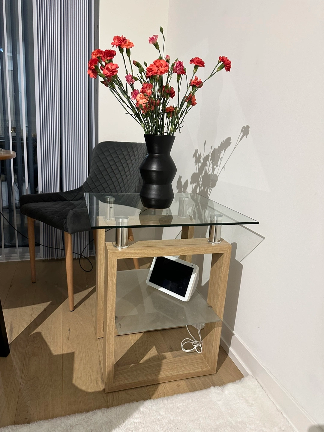 Glass-top end table with shelf
