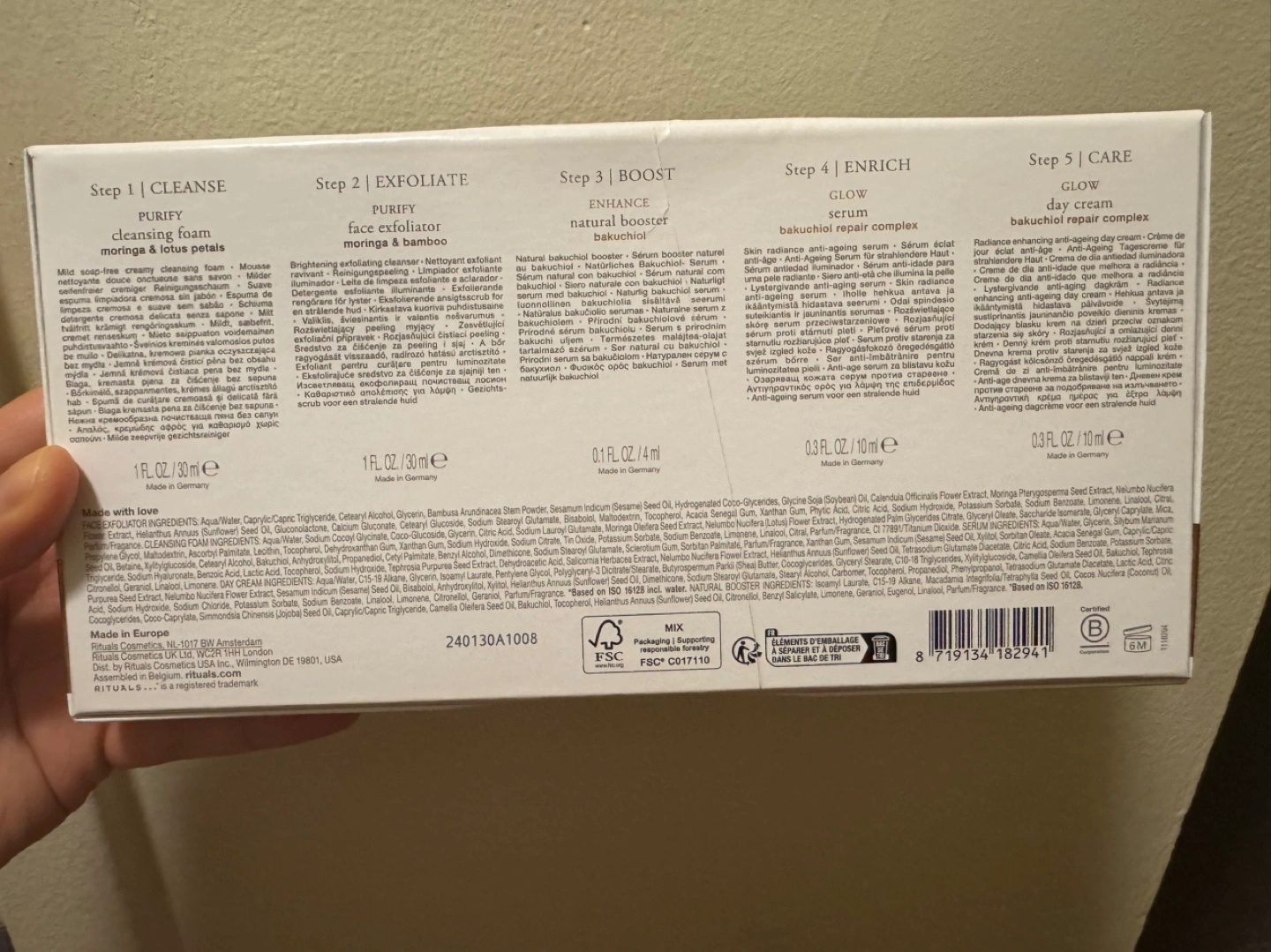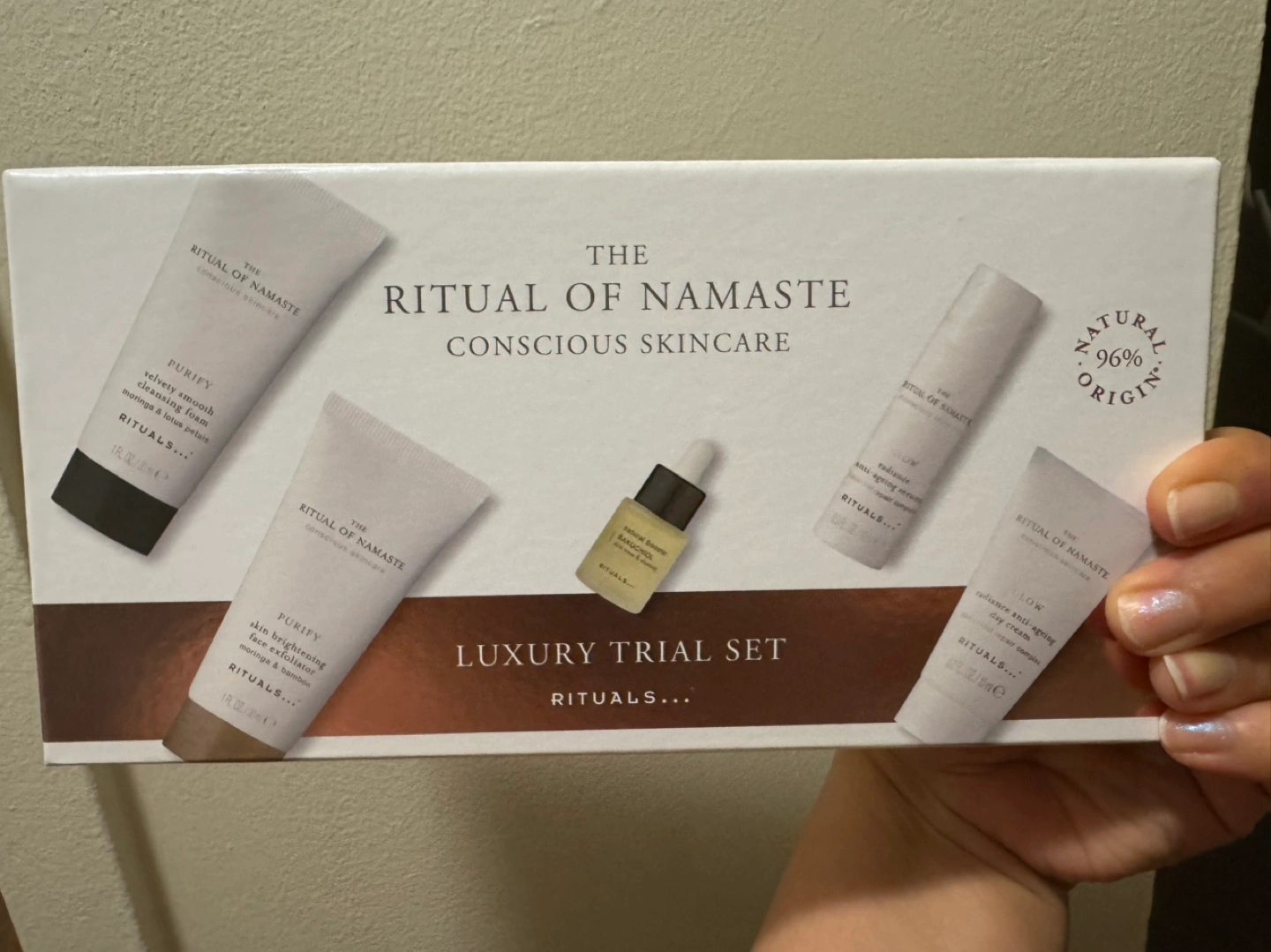 166Five-piece skincare trial set. Includes cleansing foam, face exfoliator, natural booster, glow serum, and day cream. Conscious skincare.