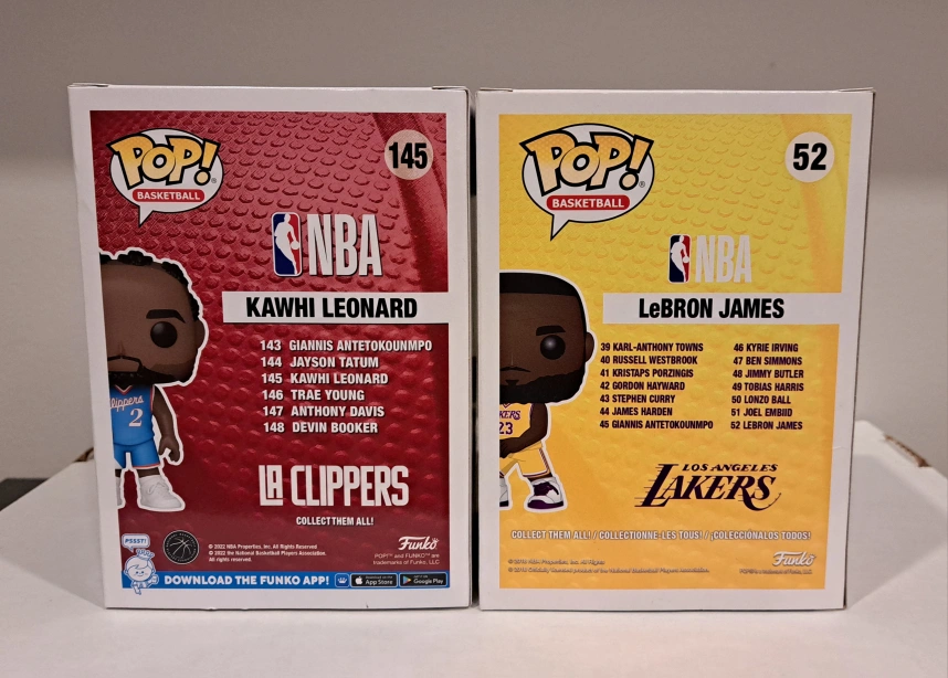 #Funko Pop! Kawhi Leonard (the Klaw) #145 and LeBron James (LBJ) #52 (Special Edition).