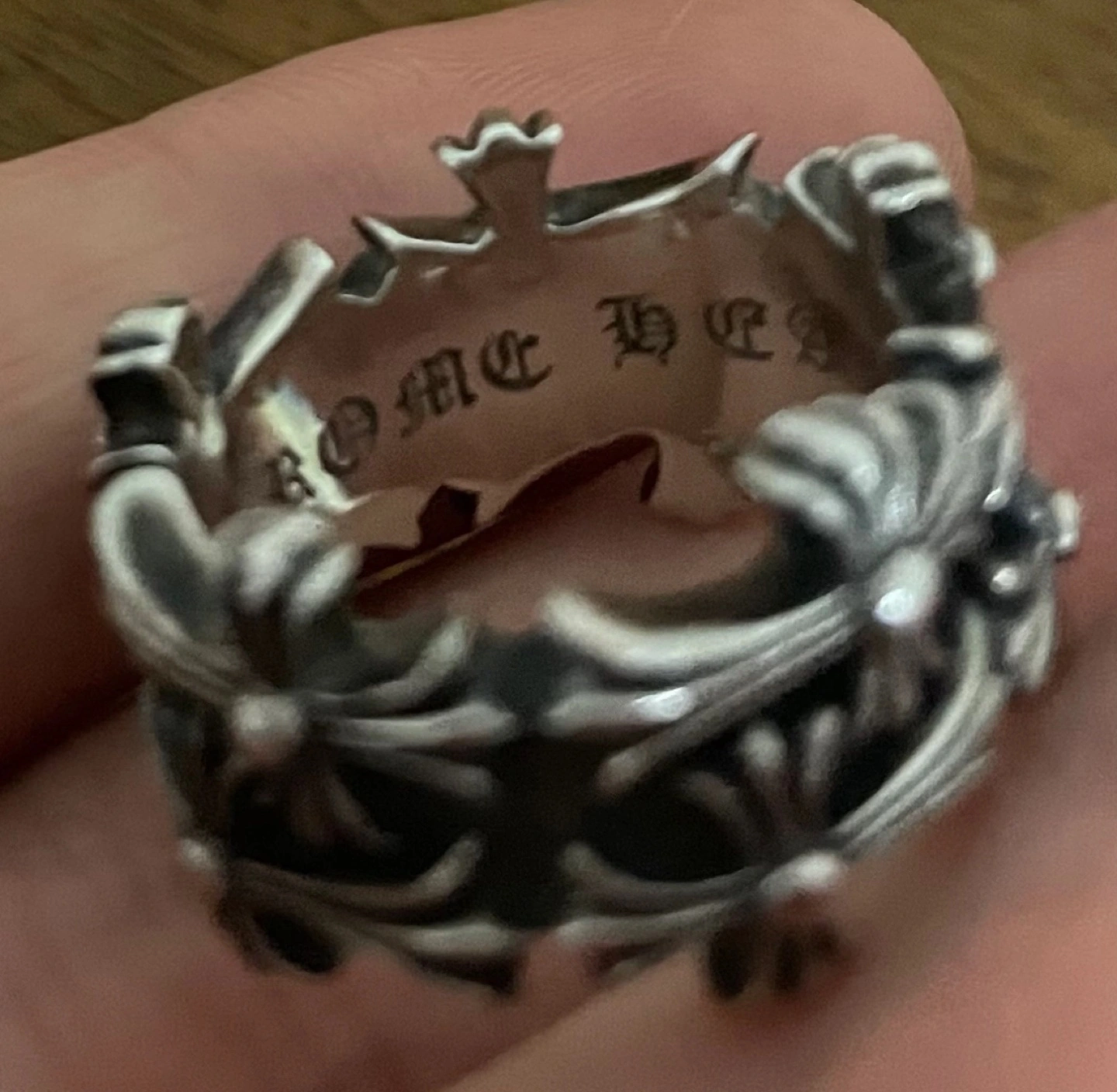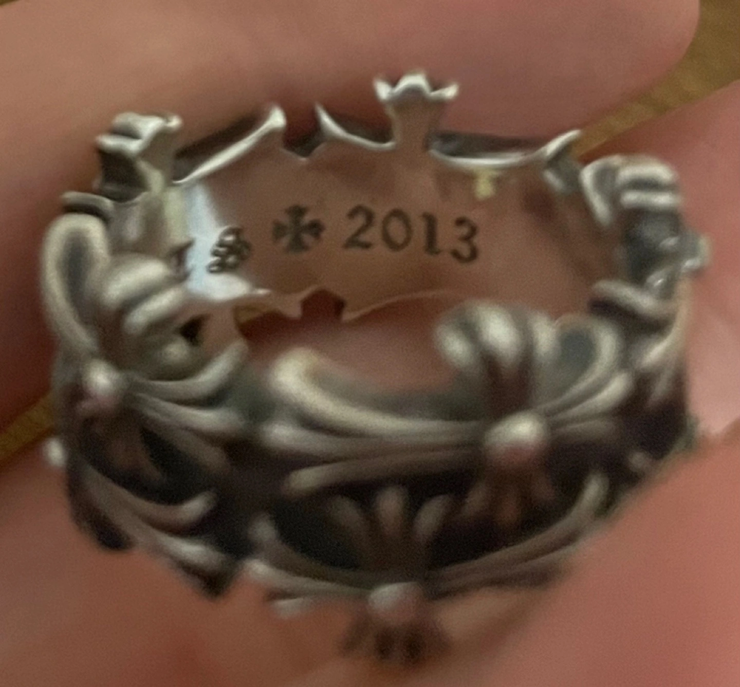 Sterling silver ring. Features Fleur de Lis design. Marked 925 and Chrome Hearts. Dated 2013.