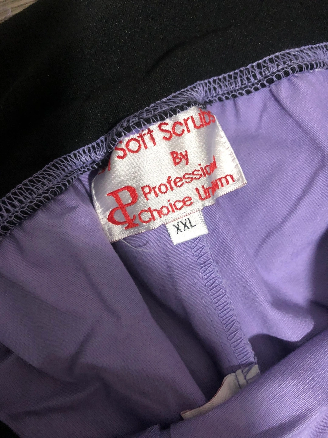 Professional Choice Uniform Silky Soft Scrubs pants. One lavender pair, size XXL. One beige pair, size XL. Both pairs feature black side panels and elastic waistbands. Excellent condition. Pockets and comfortable. Size large too - will deliver for $10