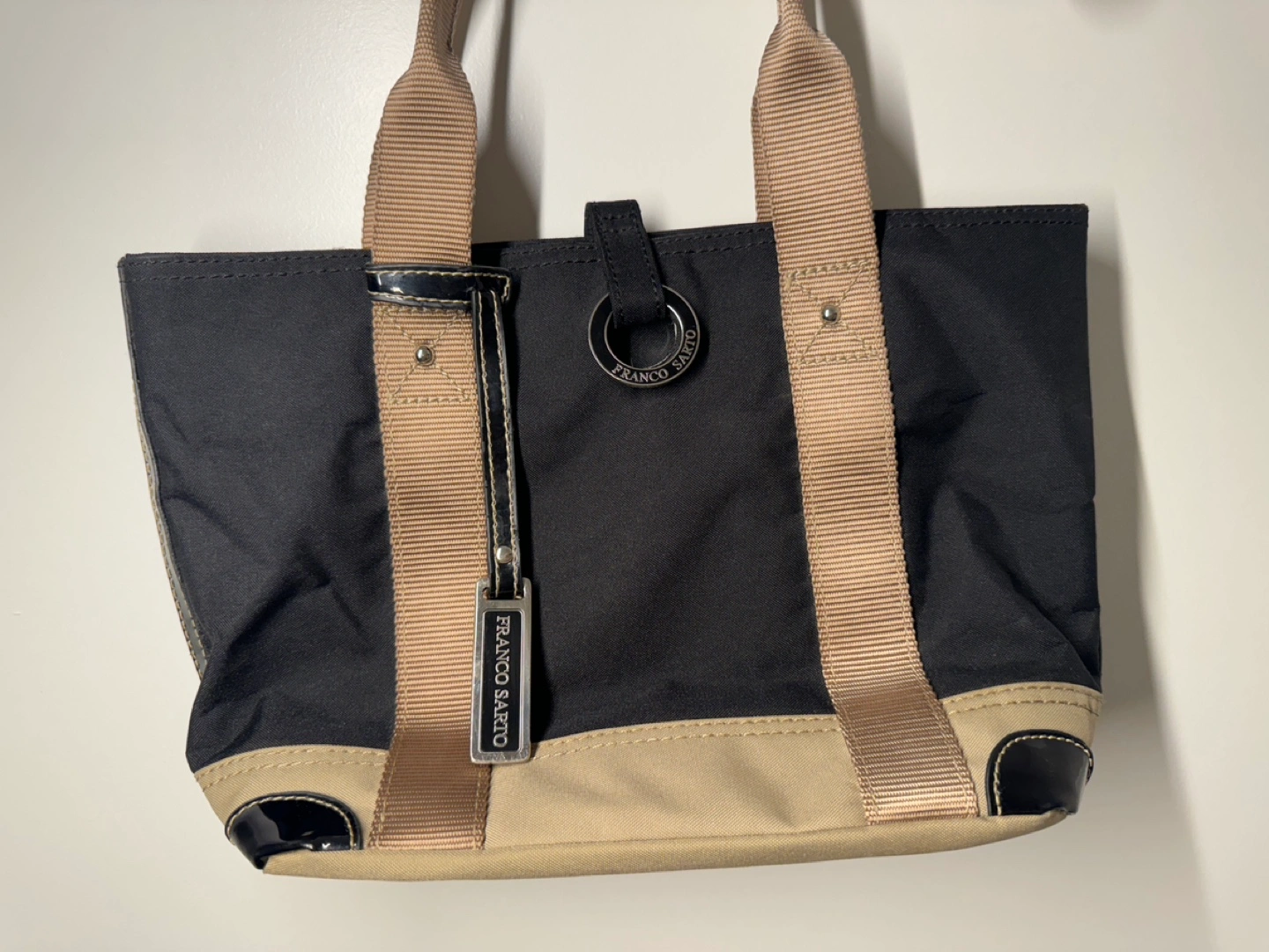 Franco Sarto Black and Beige Tote Bag