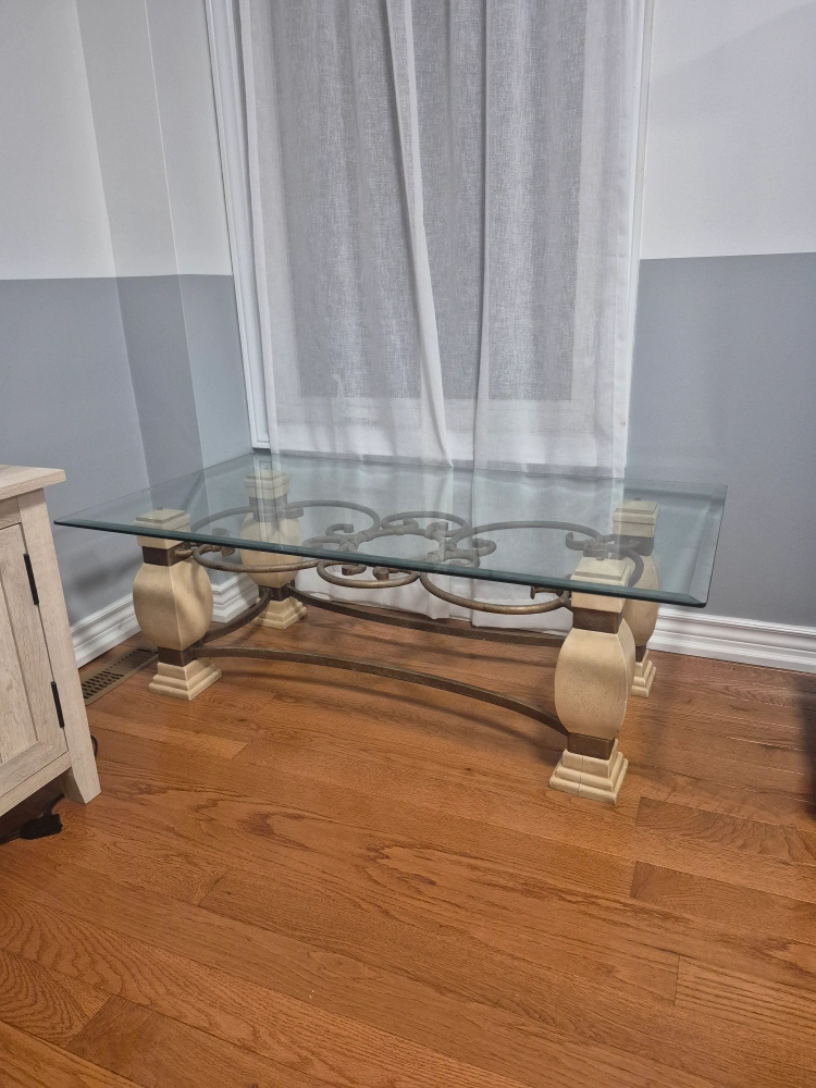 Coffee Table - Glass Top, Dark Wood
