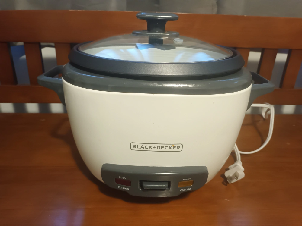 Used Black + Decker rice cooker. Eight cup capacity. Includes steamer basket. Good condition.