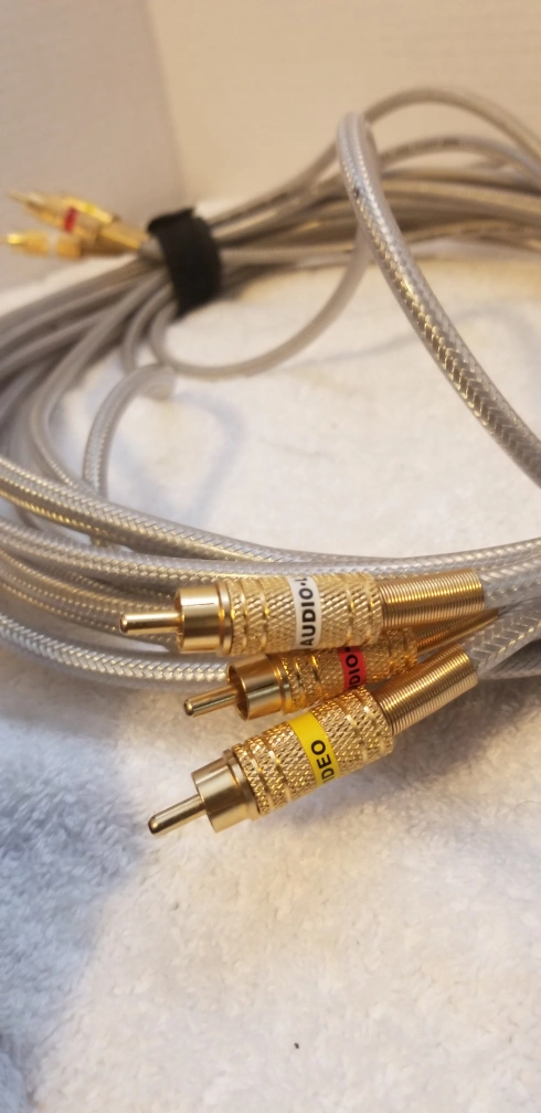 62Long component video cable. Features gold-plated RCA connectors. Grey braided cable housing. Excellent for connecting older audio/video equipment.