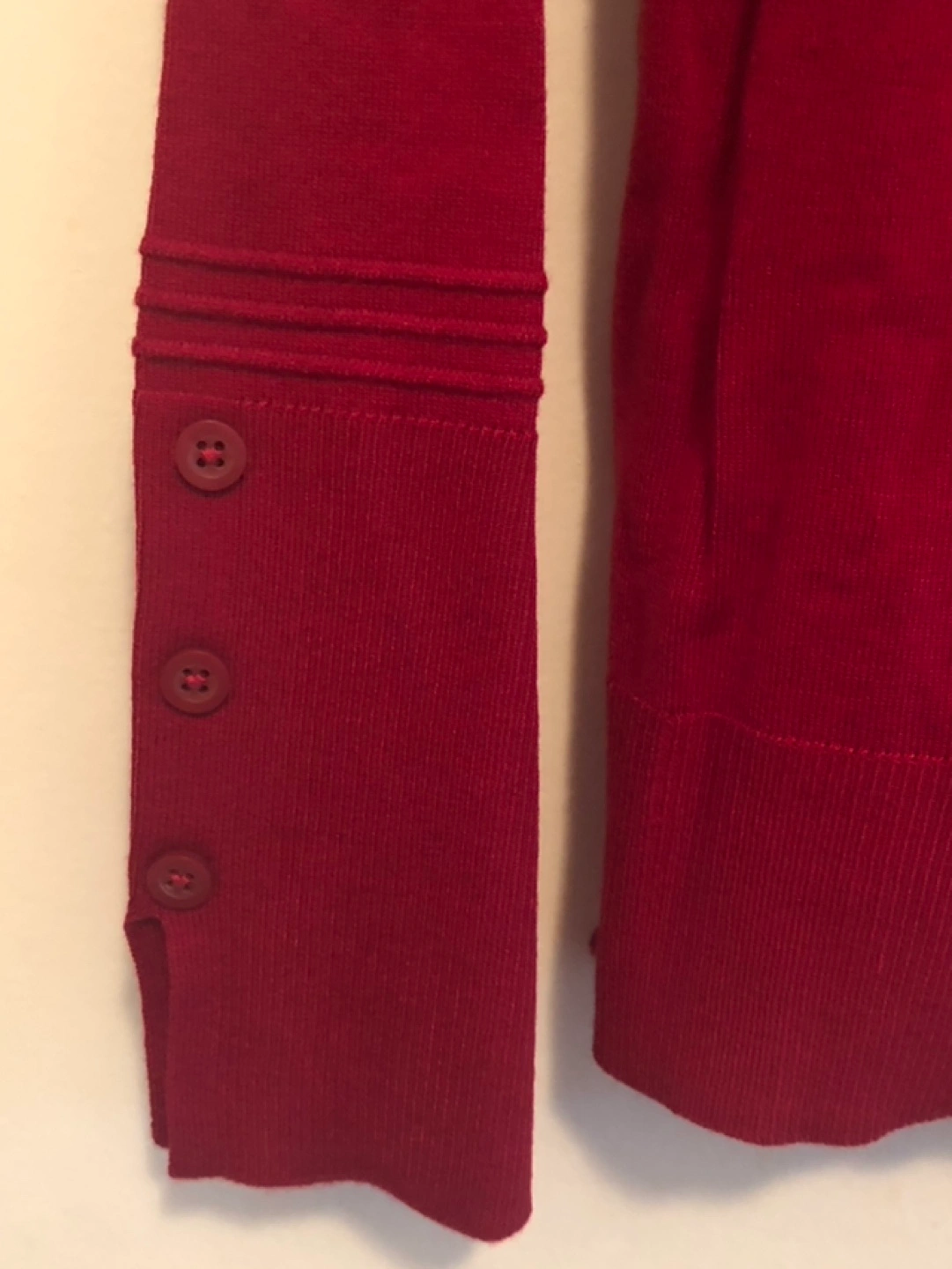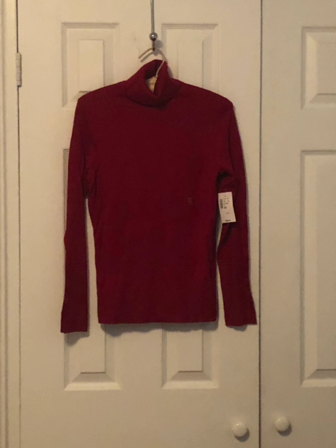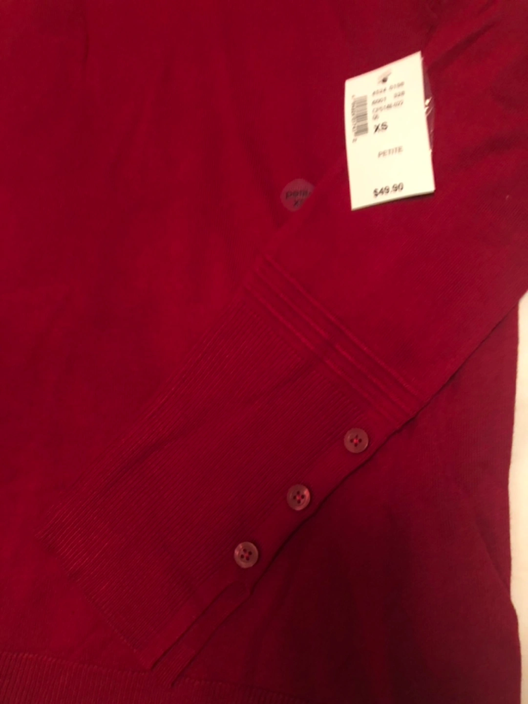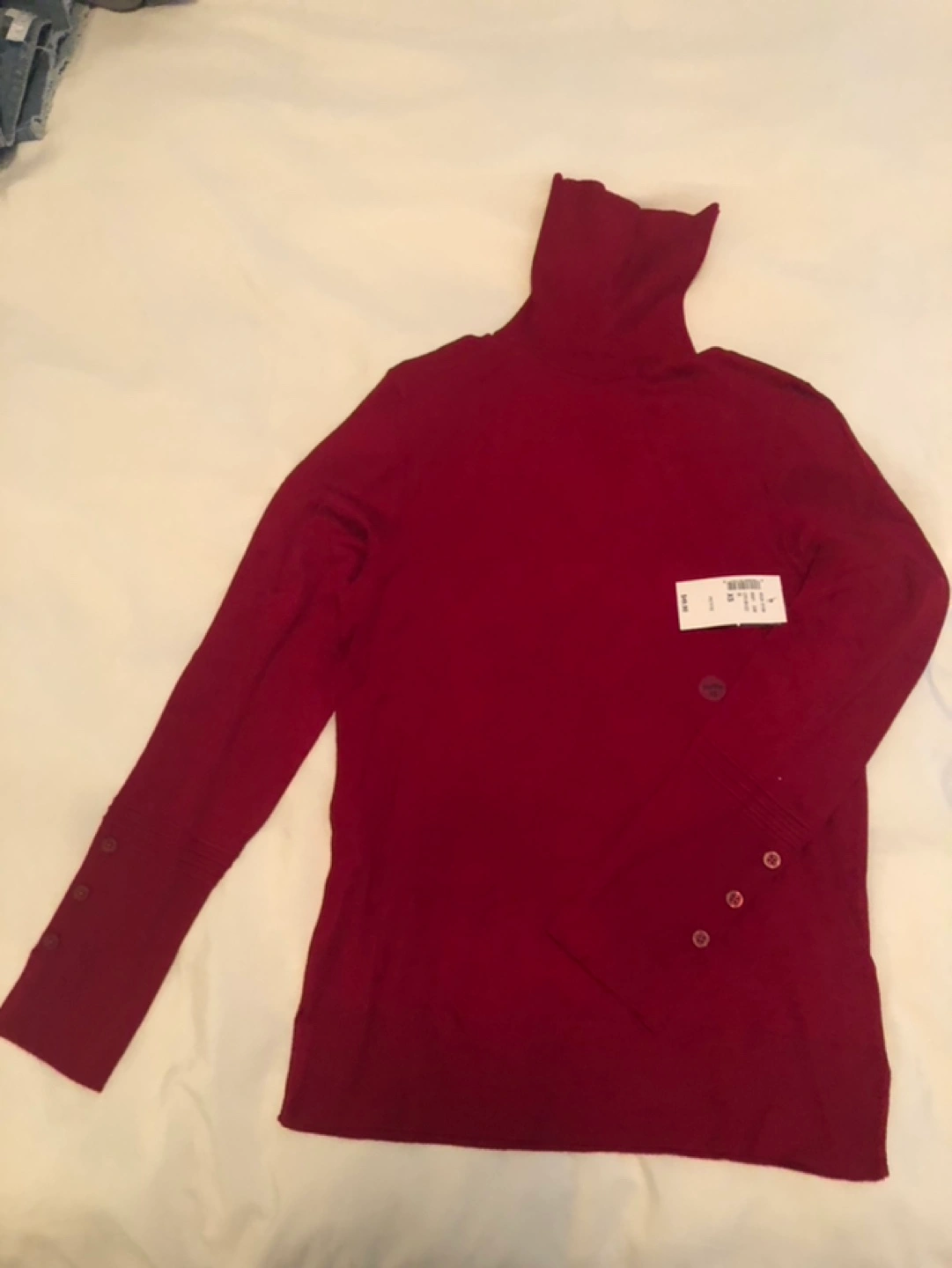 Women's burgundy turtleneck sweater. Long sleeves with button detailing at cuffs. XS Petite size. New with tags.