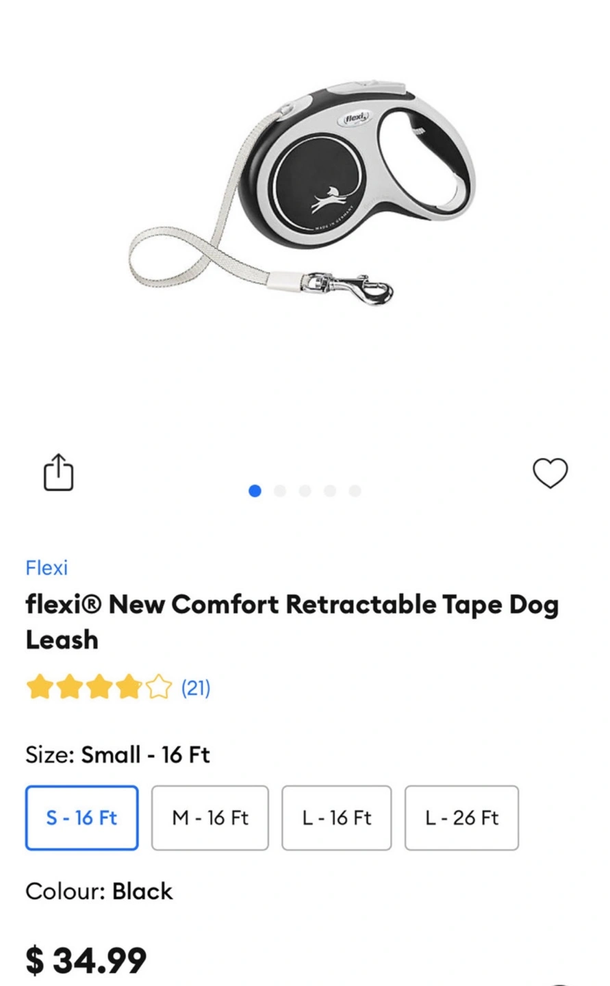 1. pet leash $34.99+tax -> $20(Each)