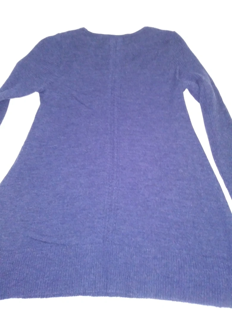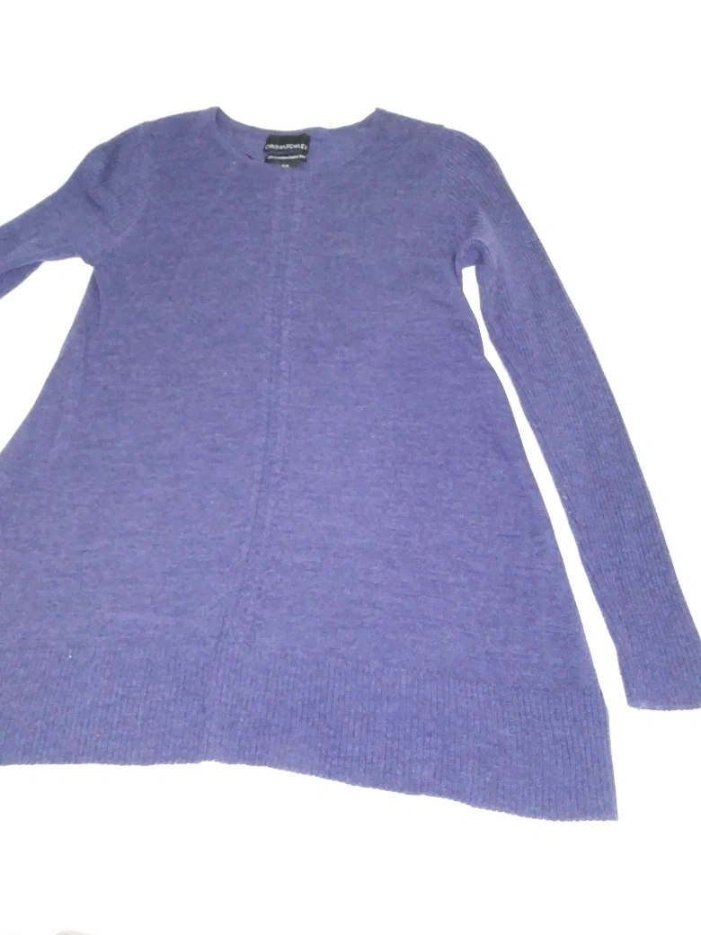 Long sleeve, dark purple sweater. Medium weight. 100% extrafine merino wool. Relaxed fit. Size medium.