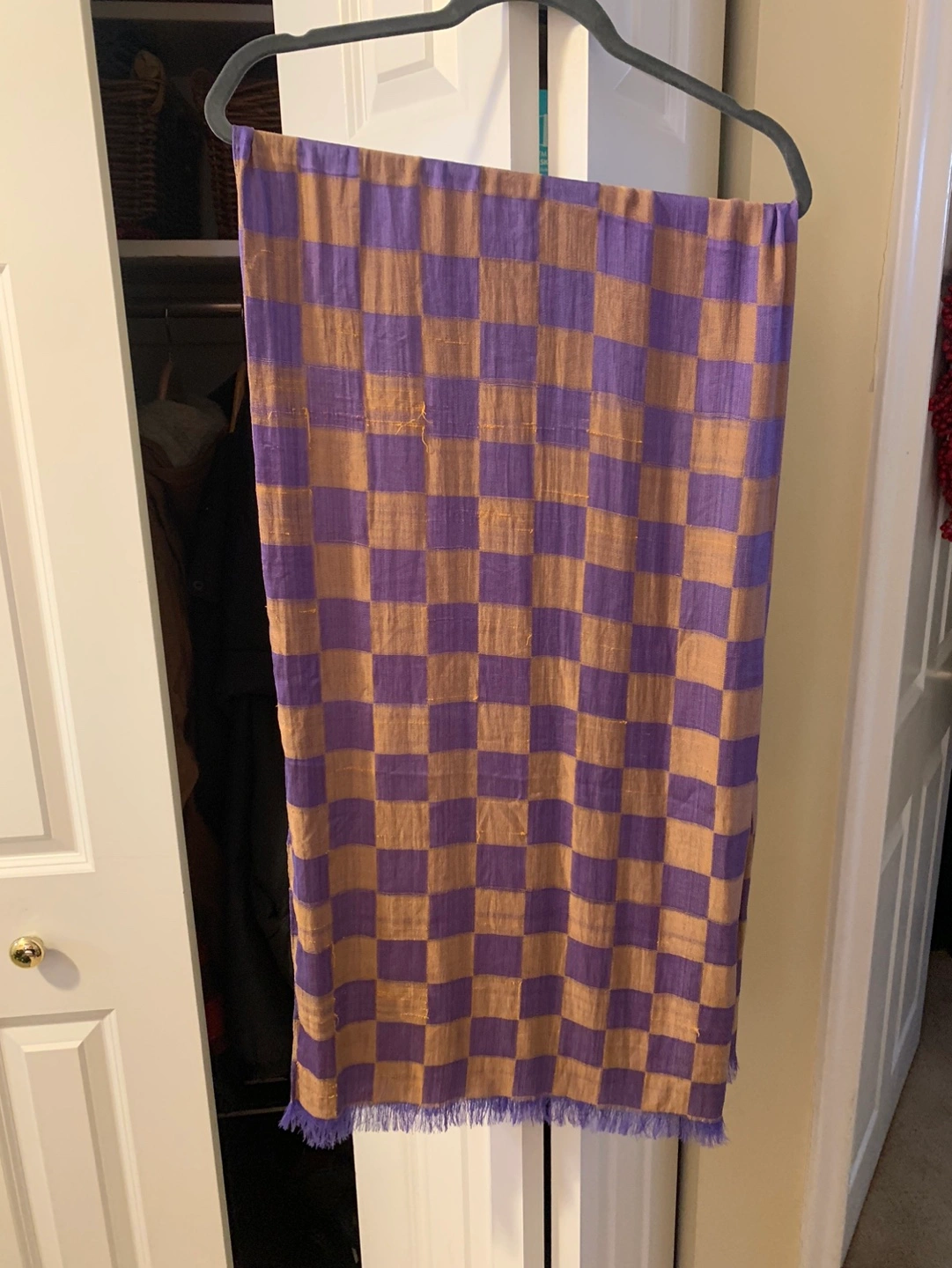 Purple and Gold Taupe Checkered Scarf