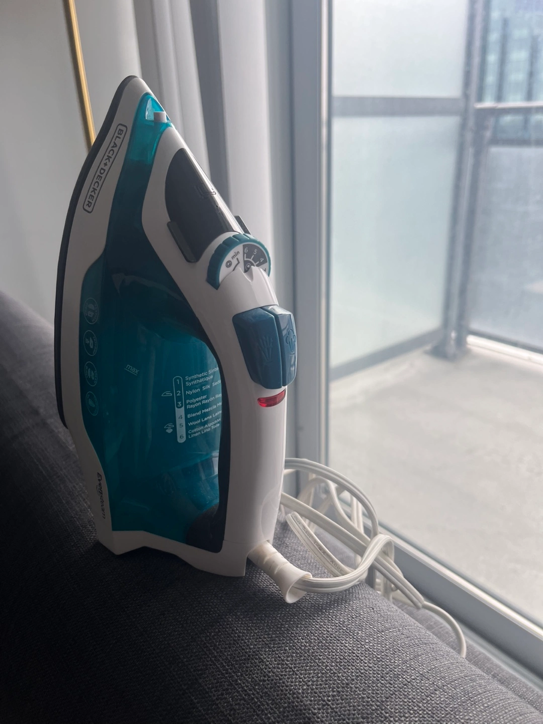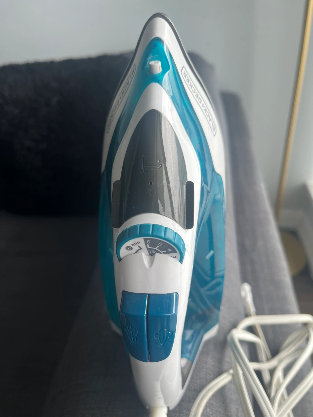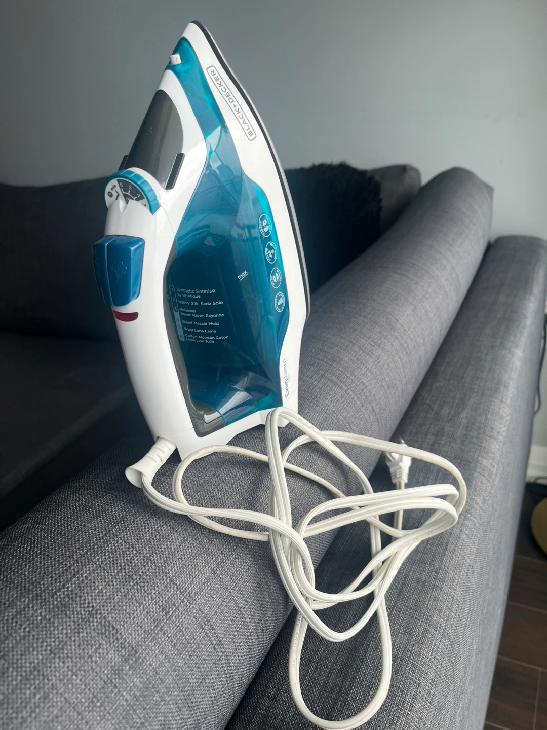 Black+Decker steam iron. Features multiple settings and a long cord. Great for home use.