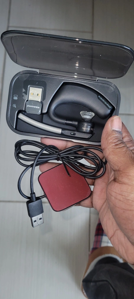 Wireless Bluetooth headset. Includes USB charging cable and case. Excellent for calls and listening to audio.