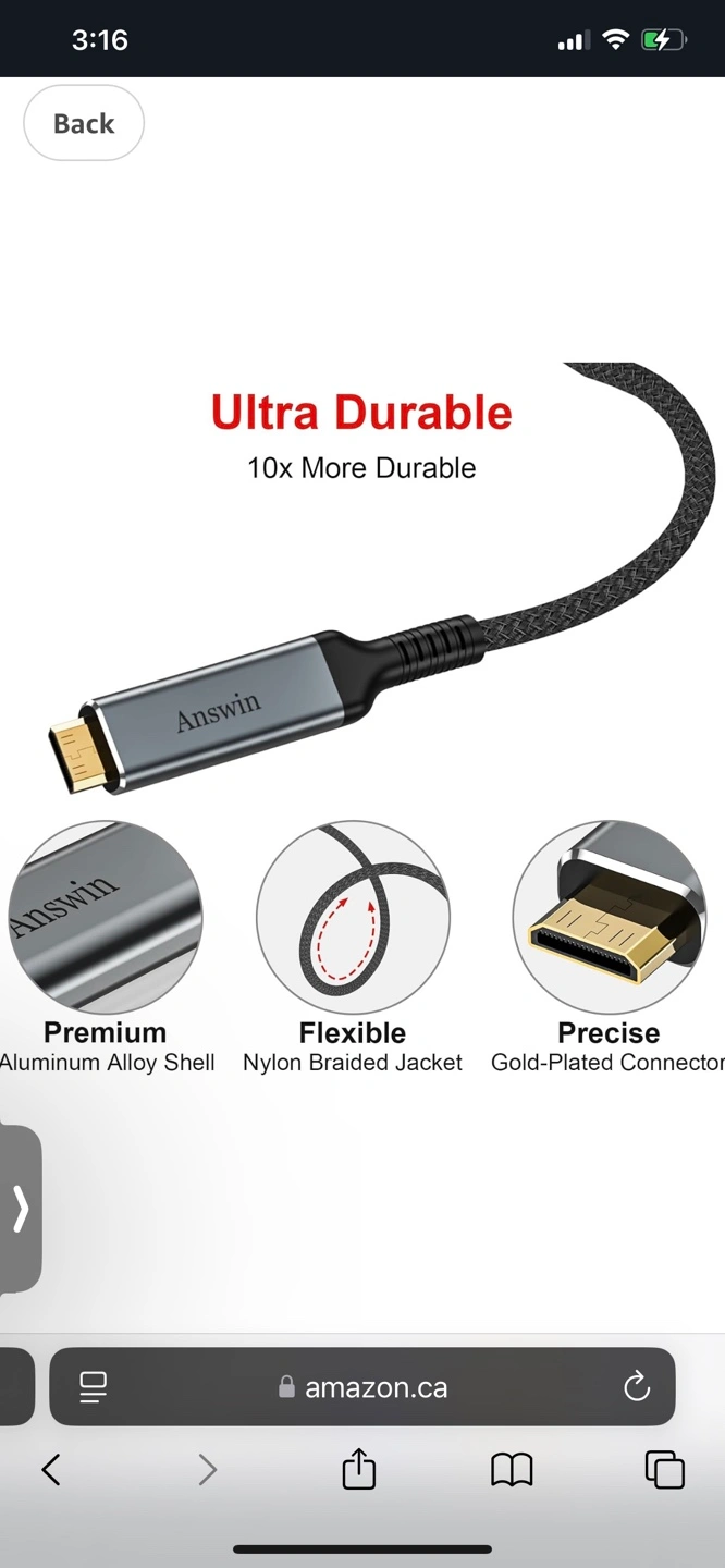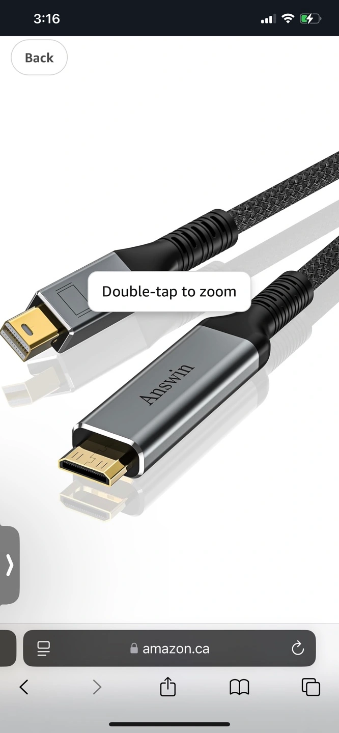 Answin Mini Displayport to Mini HDMI Cable 4K Unidirectional 6Ft 2K@60Hz Thunderbolt 2 to Mini HDMI Cable for MacBook, Surface Pro/Dock to KYY, ARZOPA, VILVA, MNN Portable Monitor (Not HDMI)