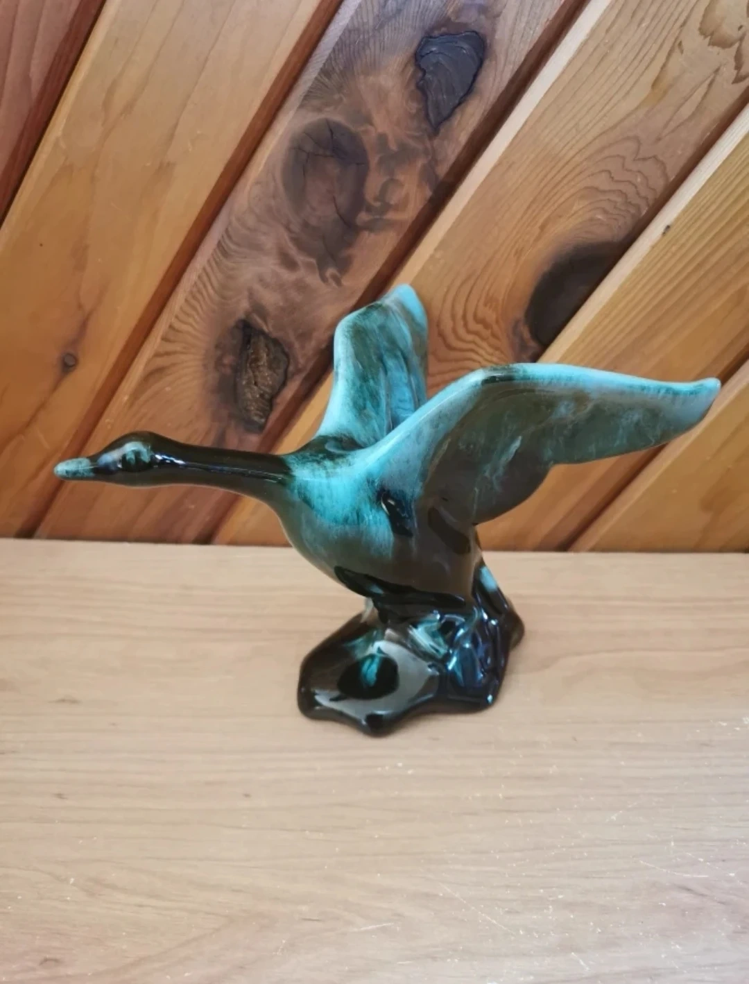 Vintage Blue Mountain Pottery Canada Goose Figurine. Beautiful Green and Black Glaze Canadian Pottery