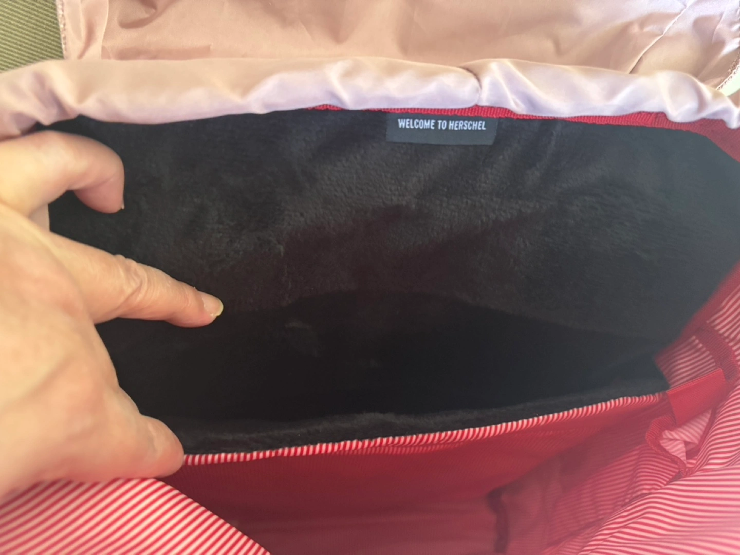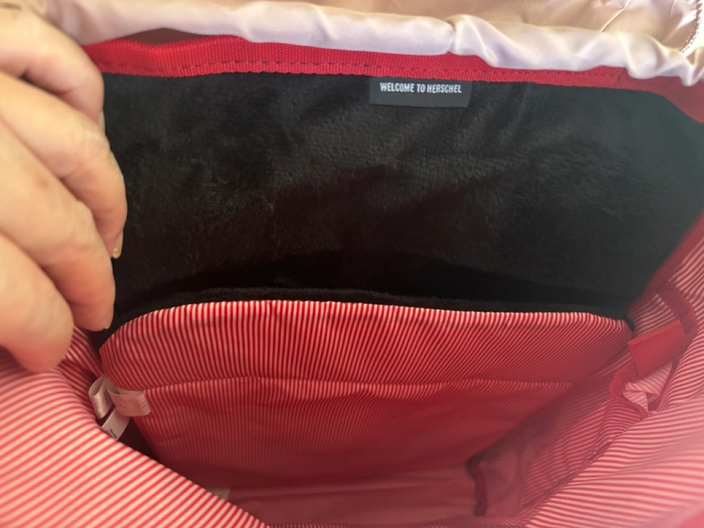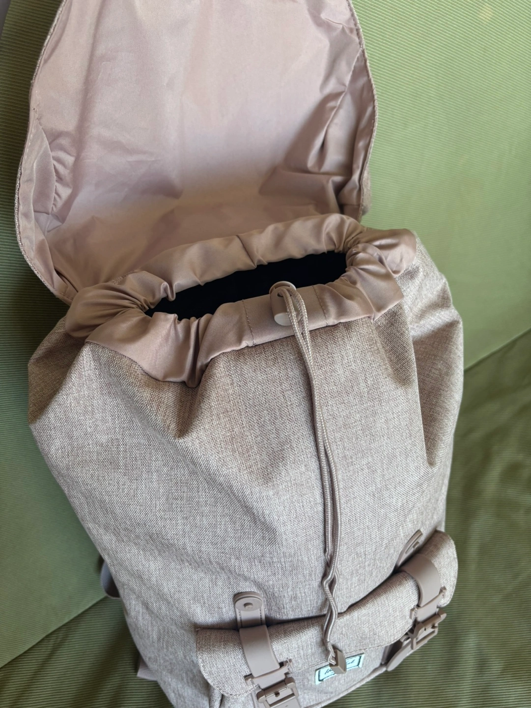 Stylish and functional backpack. Features adjustable straps, multiple compartments, and a drawstring closure. Padded and fleece lined 13” laptop sleeve. Contoured shoulder strap, air mesh back padding. Perfect for everyday use or travel. Ash rose crosshatch color. Original $ 183 + tax.