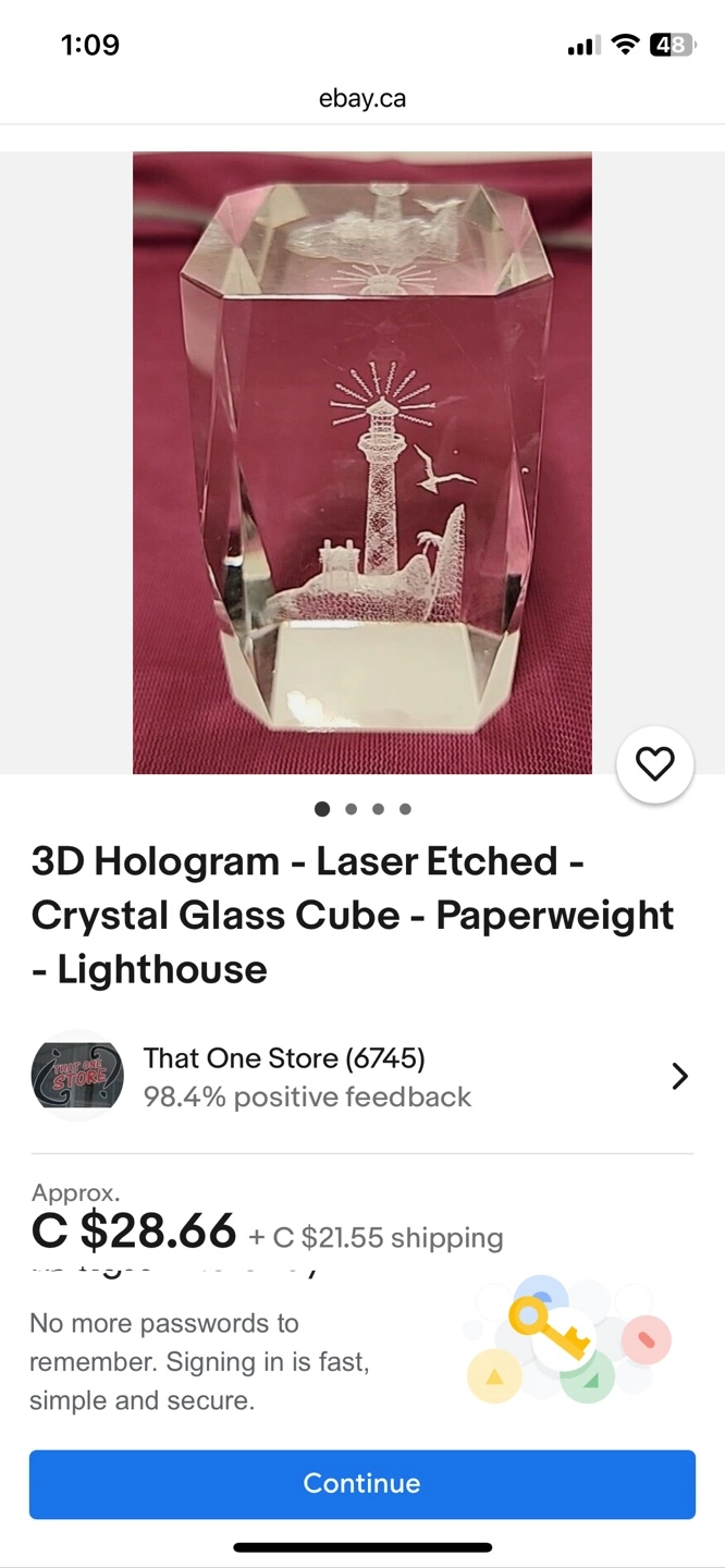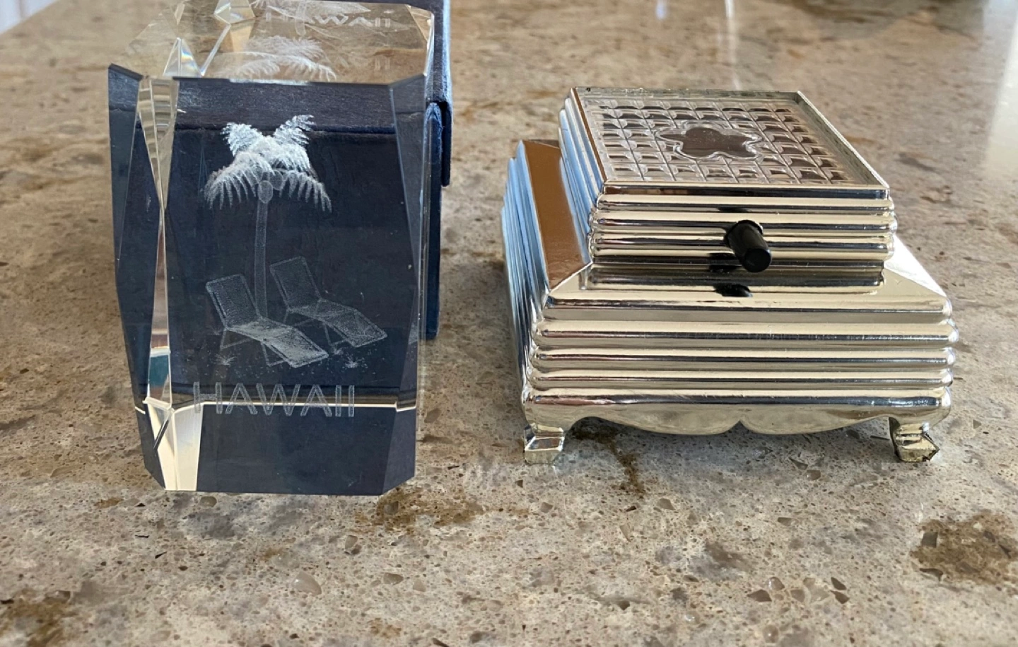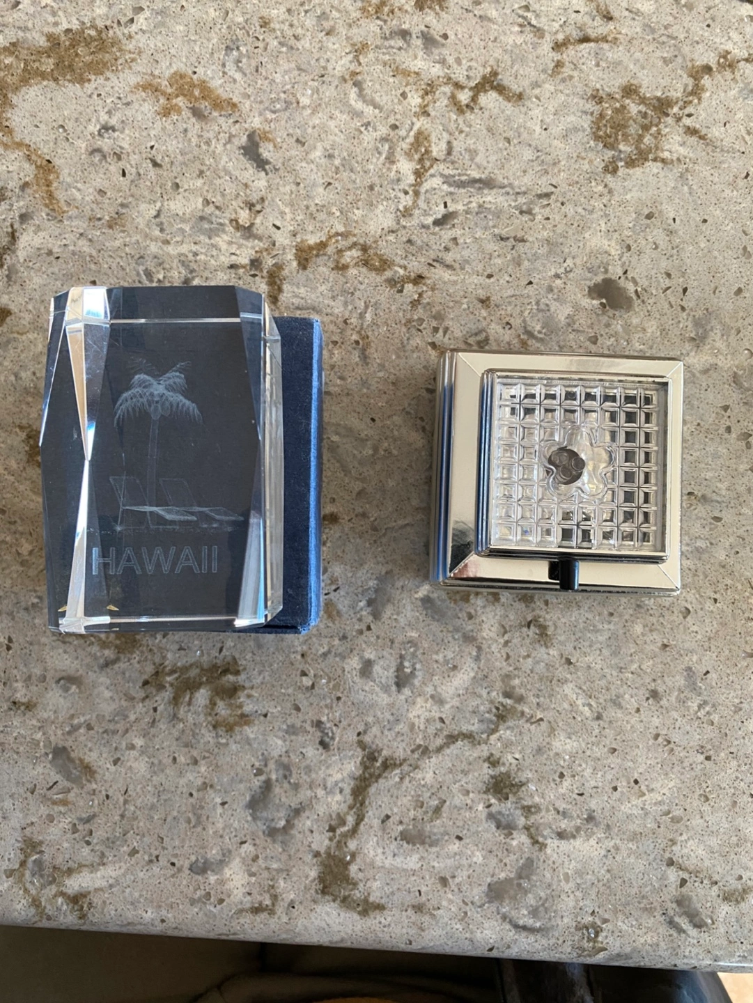 Laser-etched 3D hologram crystal cube Features a palm tree and lounge chairs. Includes a light-up base. No smoking or pet household. Pick up in Scenic Acres NW