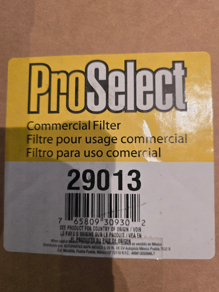 113New ProSelect commercial air filter. Model number SFI 29013. Part number 10765809309309. Suitable for commercial use.