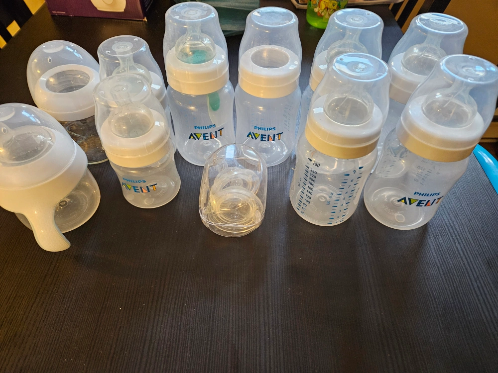 Large lot of Philips Avent baby bottles. Various sizes and some extra nipples included. Used, but in good condition. Perfect for parents needing extra bottles.
