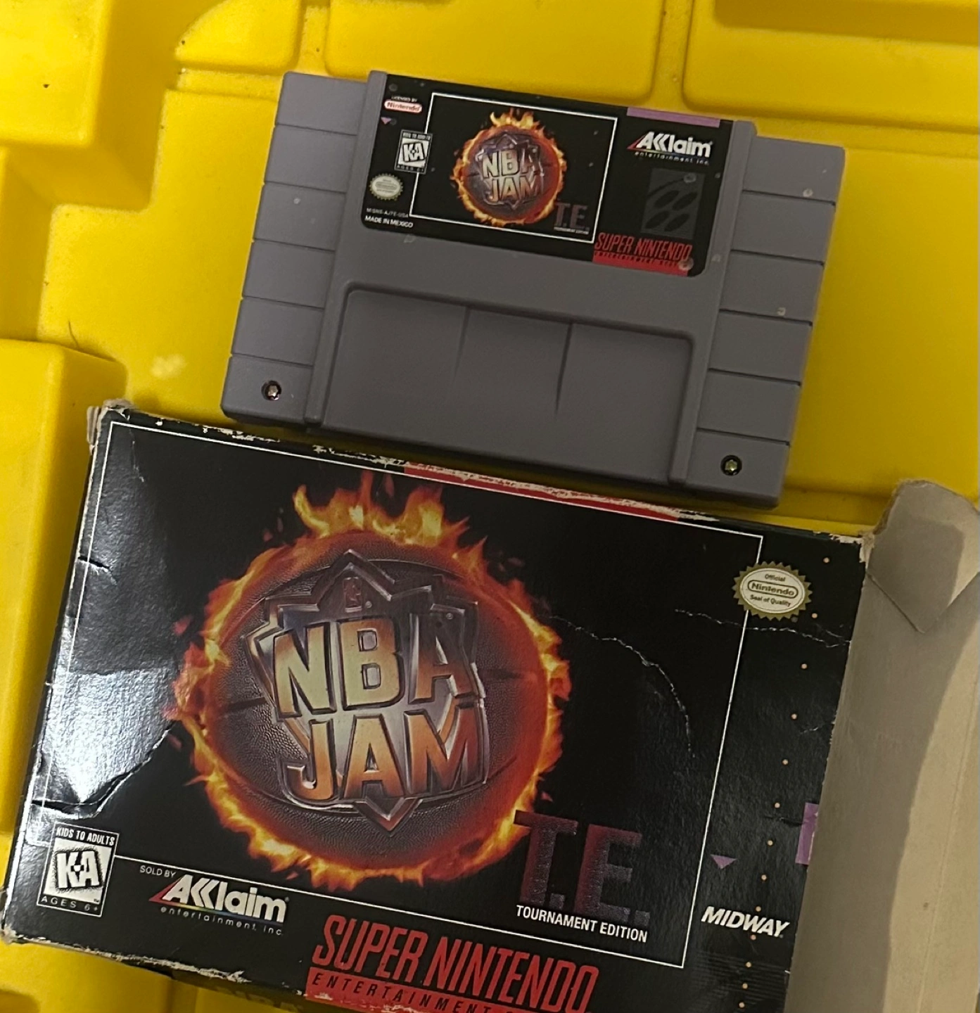 99Super Nintendo game. NBA Jam Tournament Edition. Includes box and cartridge. Midway and Acclaim.