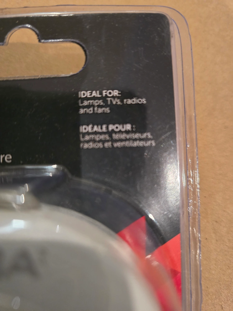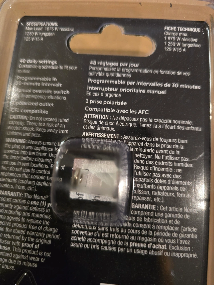 113New in package. Indoor use. 48 daily settings. 30-minute intervals. Manual override switch. Ideal for lamps, TVs, radios and fans.