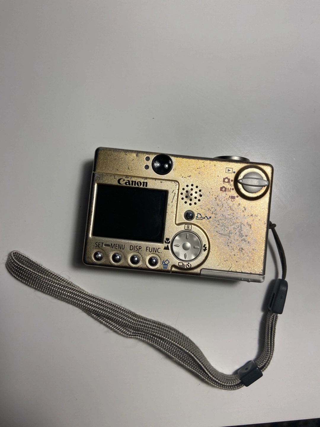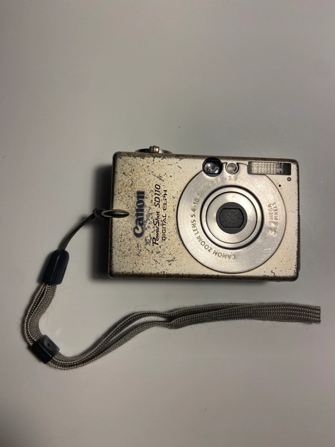 Vintage Canon PowerShot SD110 digital camera. 3.2 megapixels. 3x optical zoom. Includes wrist strap. Shows signs of wear ans screen only shows black, photos will appear as black. Comes with charger and 2 batteries if given reasonable price.