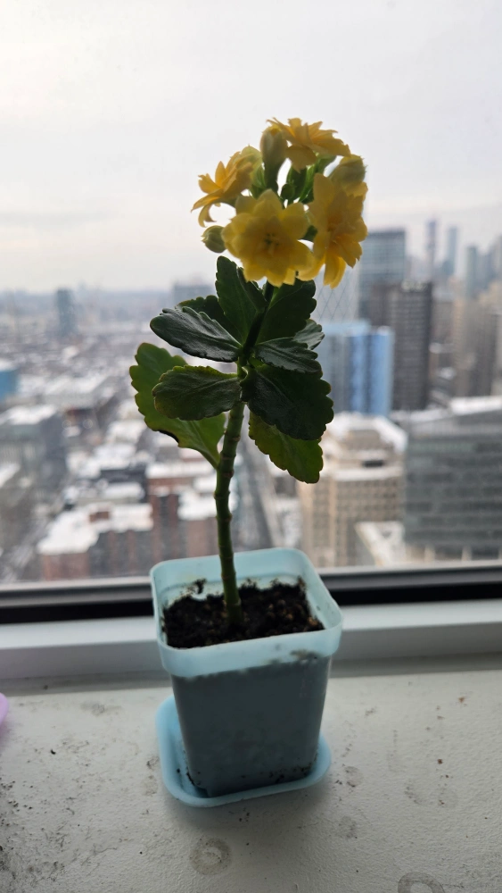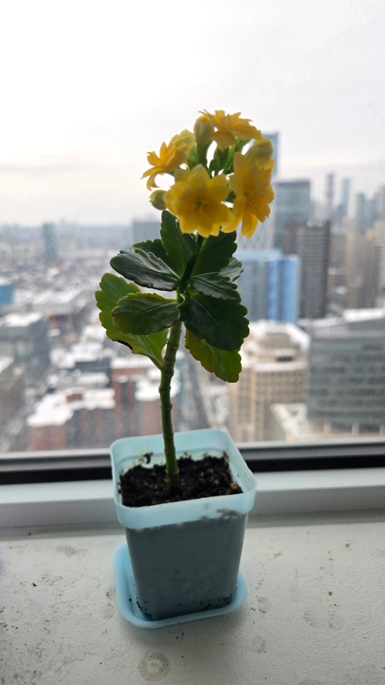 433Small flowering plant in a plastic pot. Bright yellow flowers. Healthy-looking. Perfect for a windowsill.