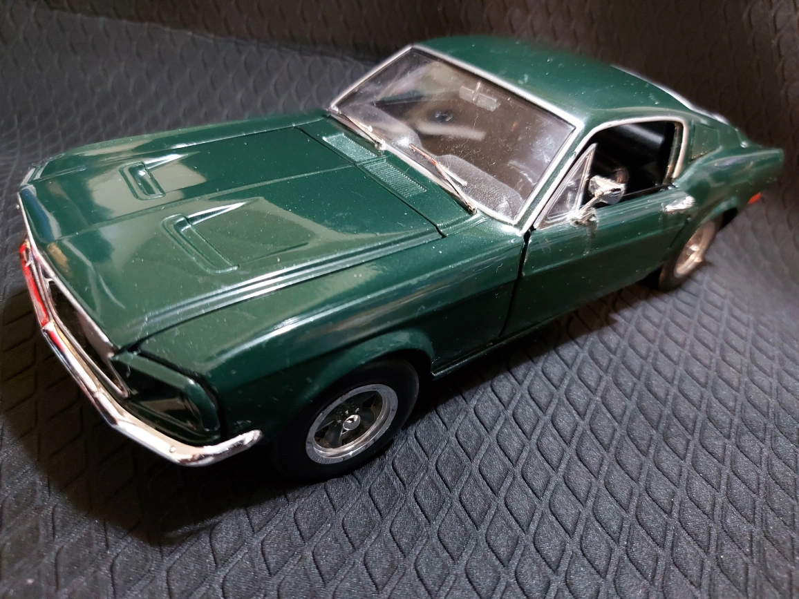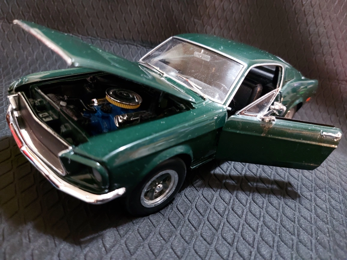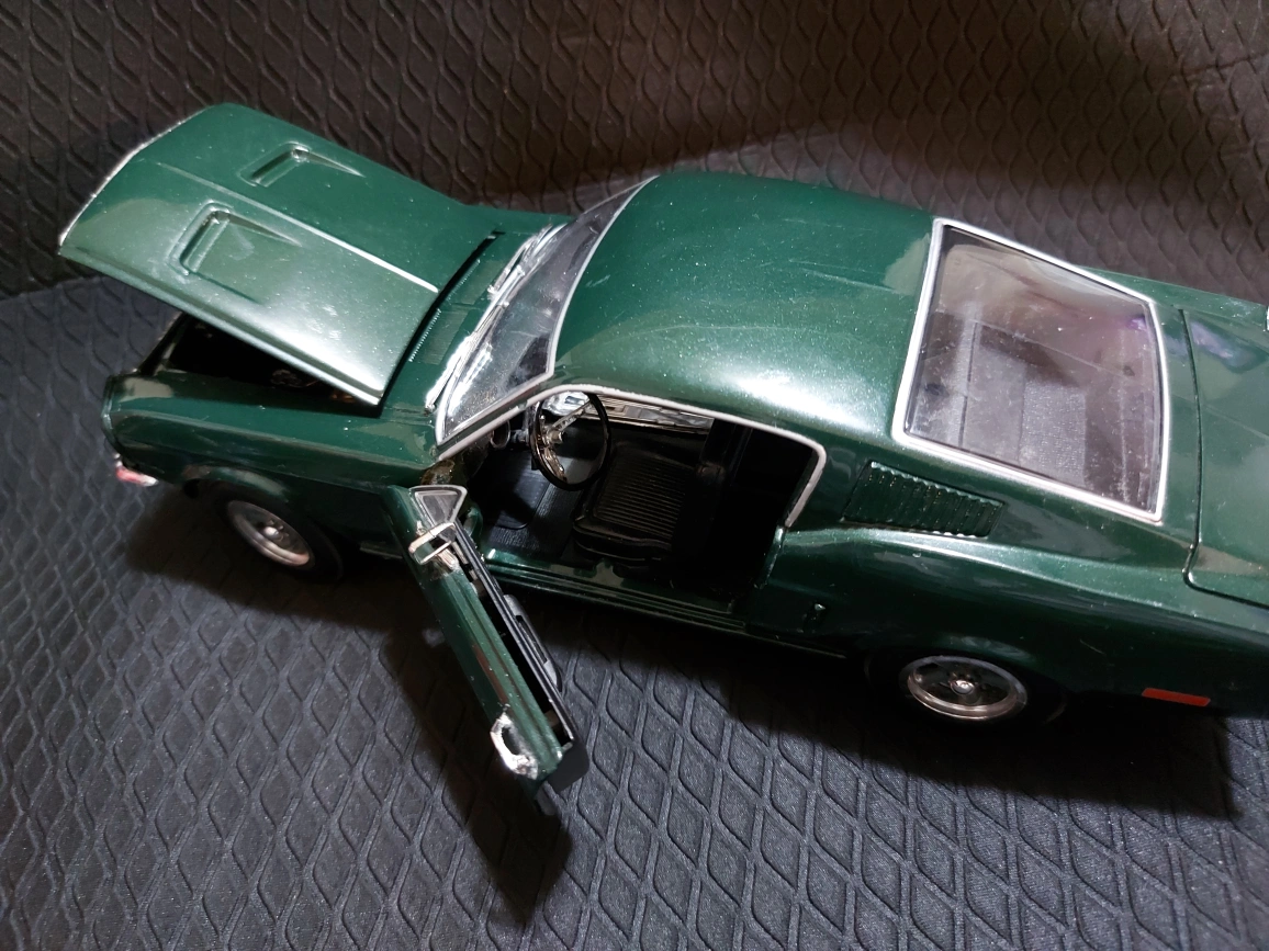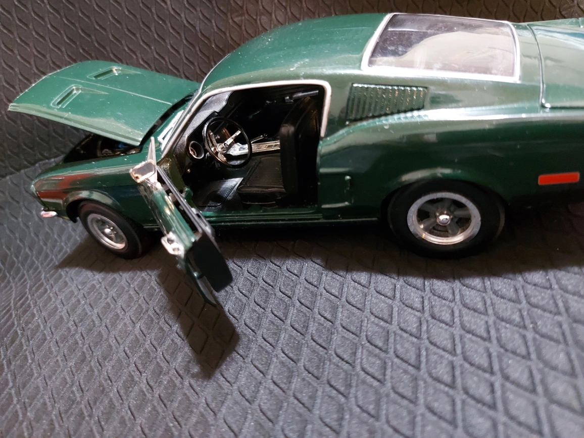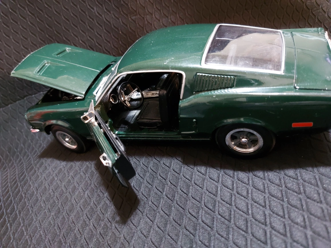 10Collectible diecast model car. Dark green finish. Features opening doors and hood. Detailed interior.