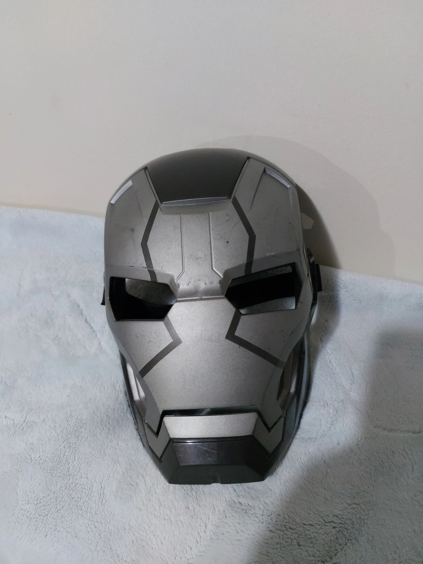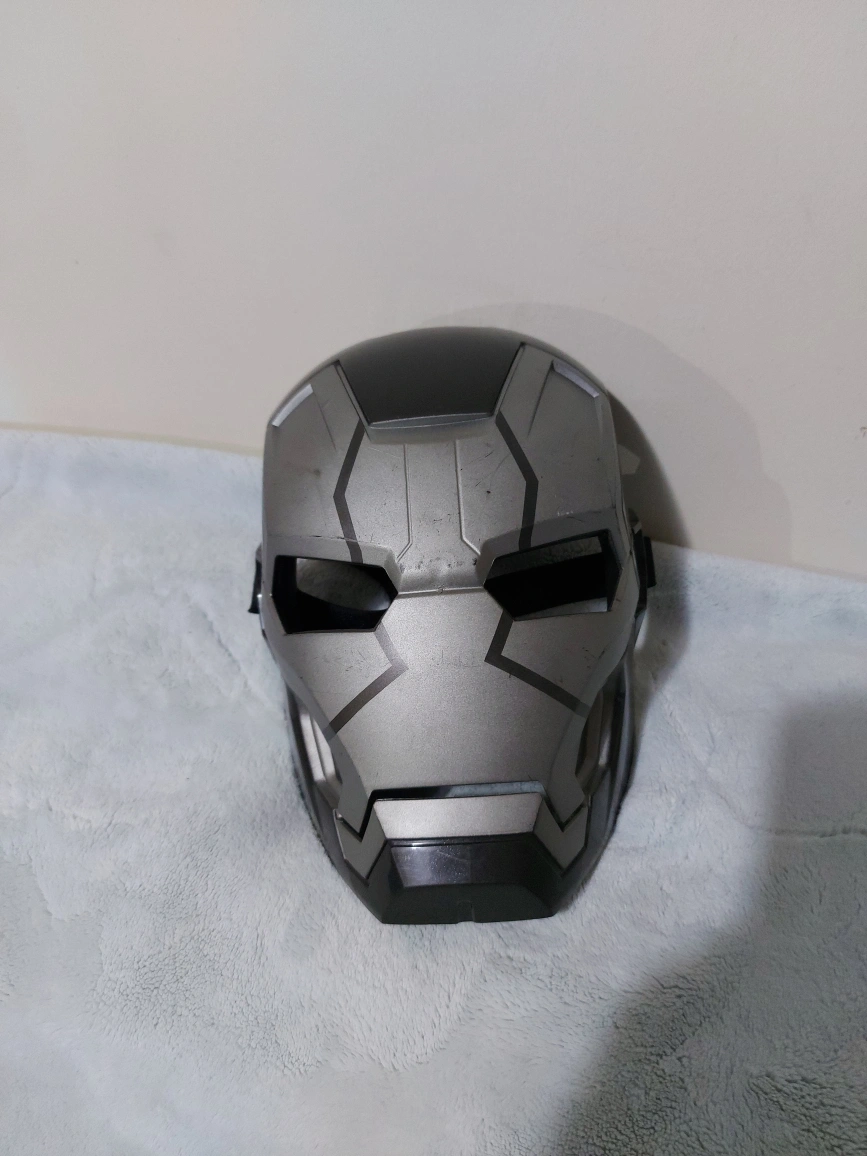 10Grey and black plastic Iron Man mask. Great for costume parties or cosplay. Shows minor wear.