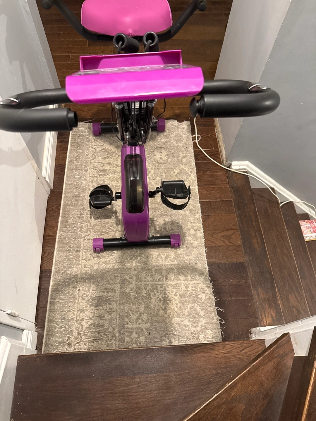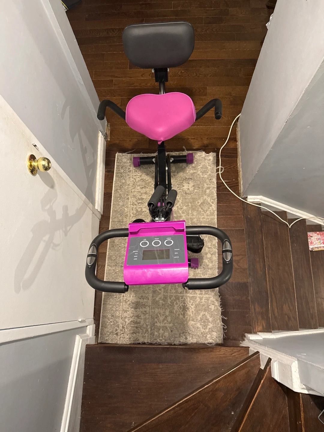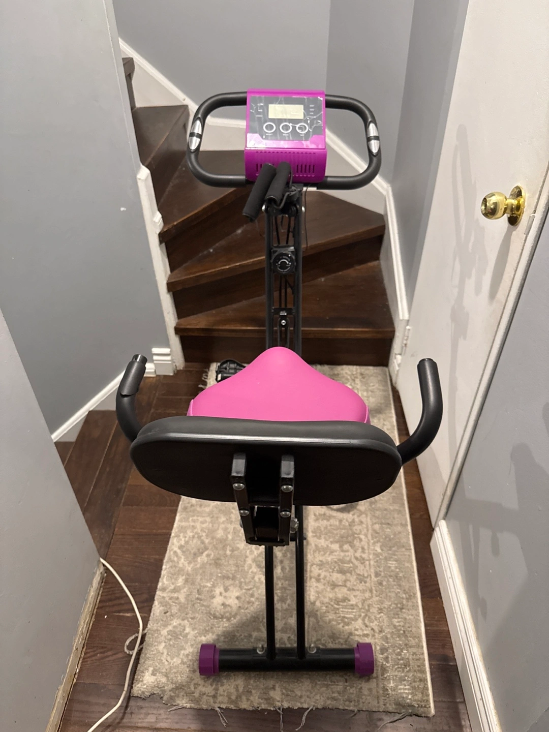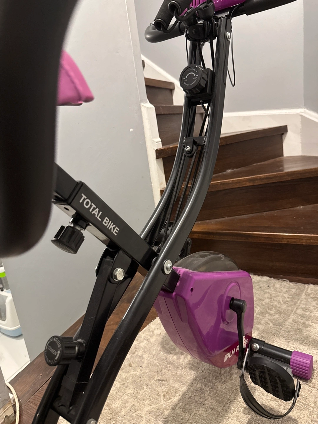 BRAND NEW NEVER USED!! Recumbent exercise bike. Purple and black. Features adjustable resistance, monitor, and arm resistance bands. Compact design.
