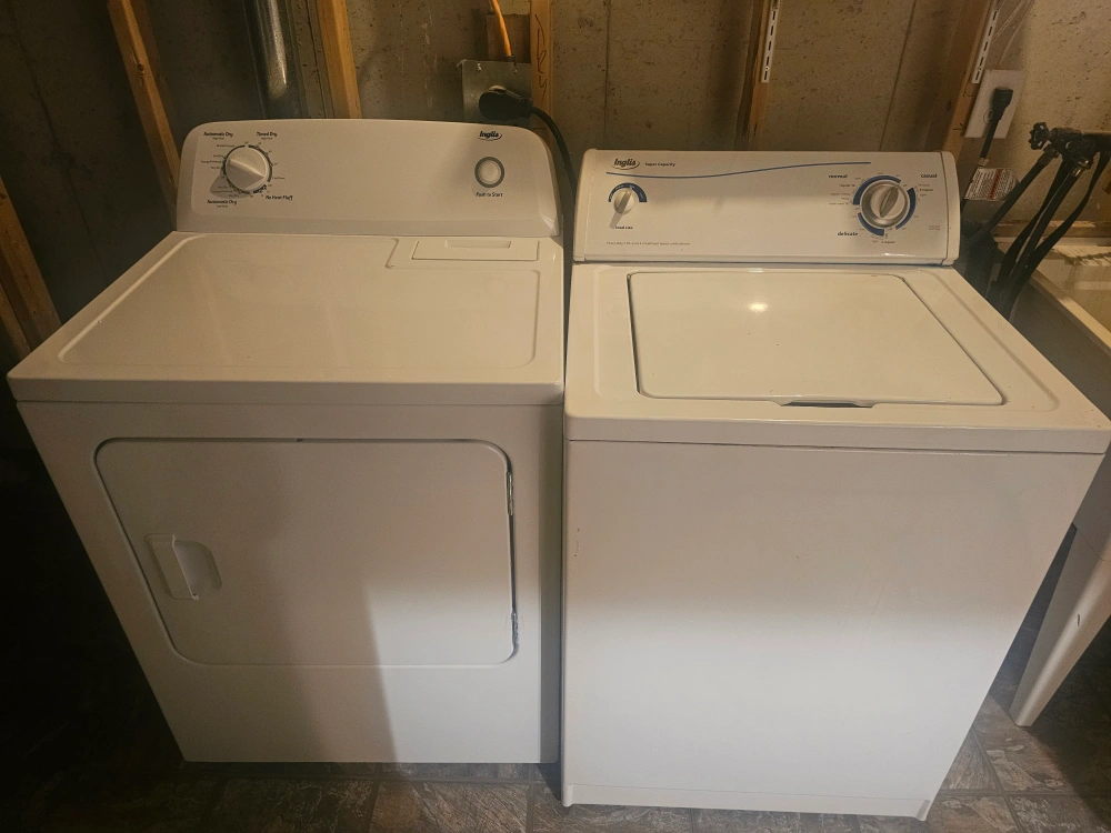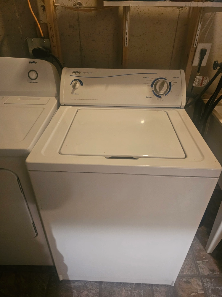 Matching white Inglis washer and dryer. Used, but in good working order. Great for apartments or smaller spaces. Sold as a set only.