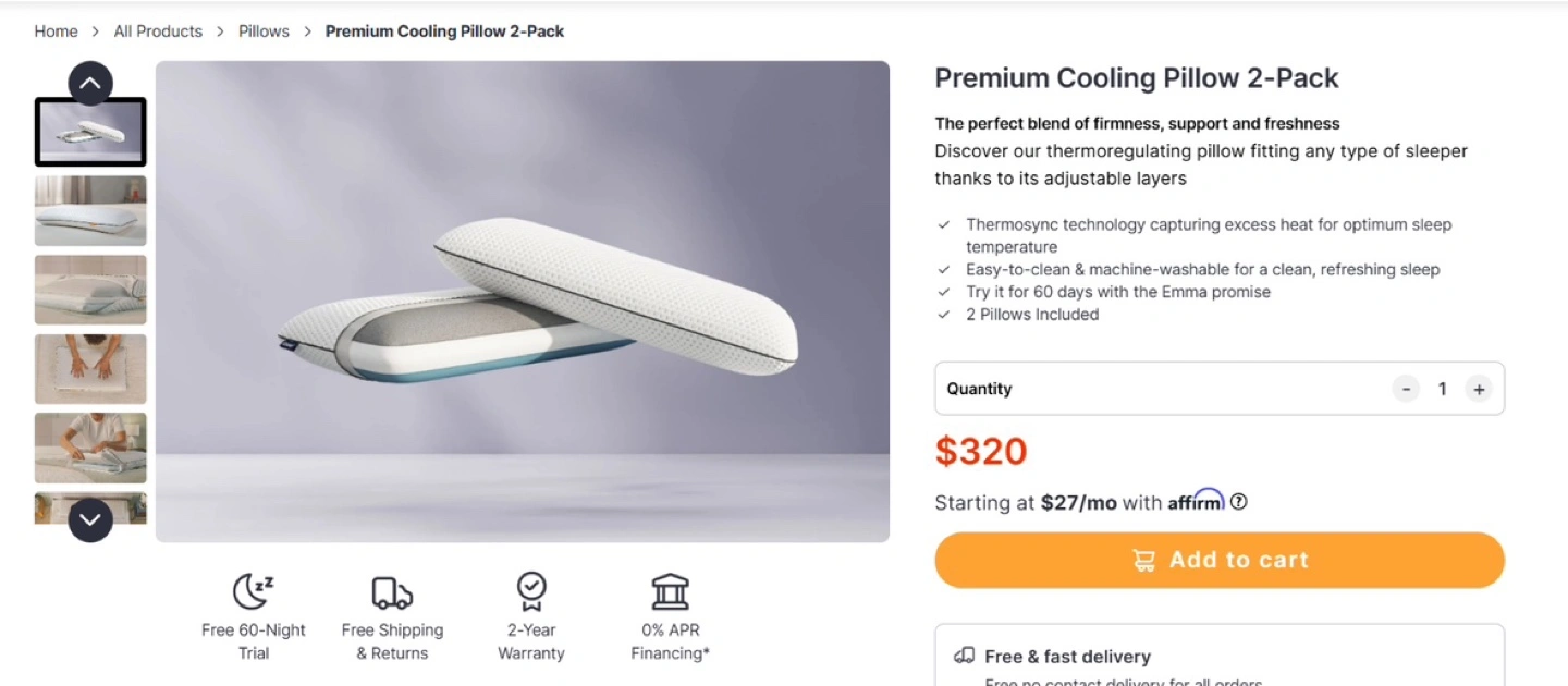 Emma Premium Cooling Pillows - 2-Pack (1 left)