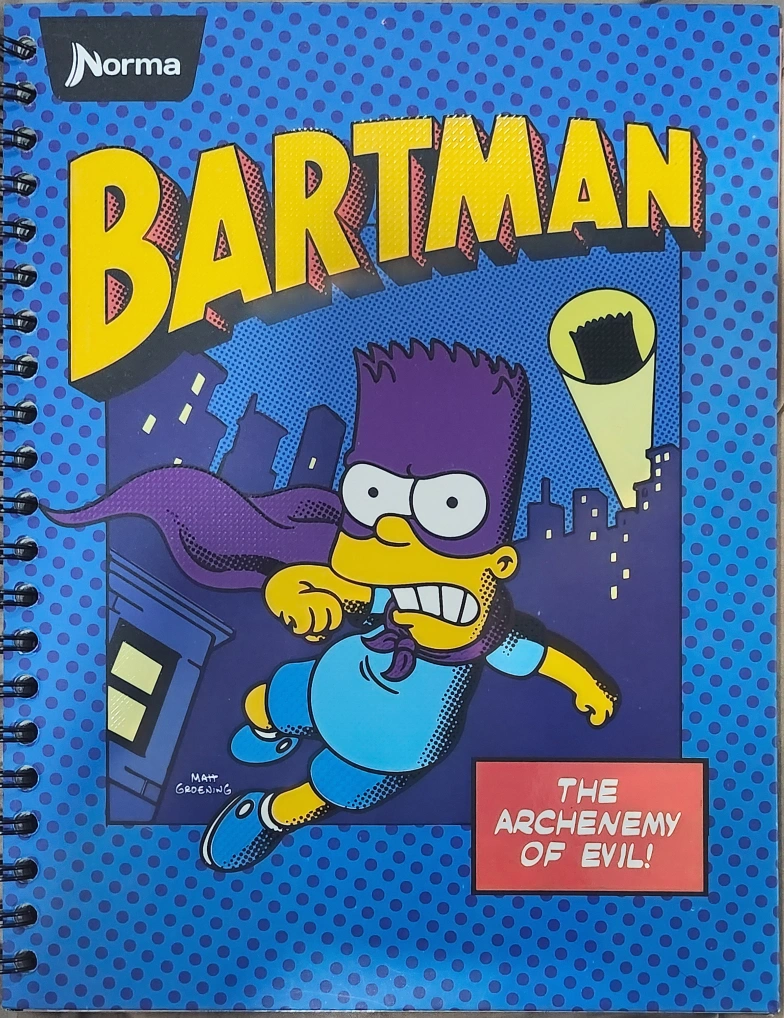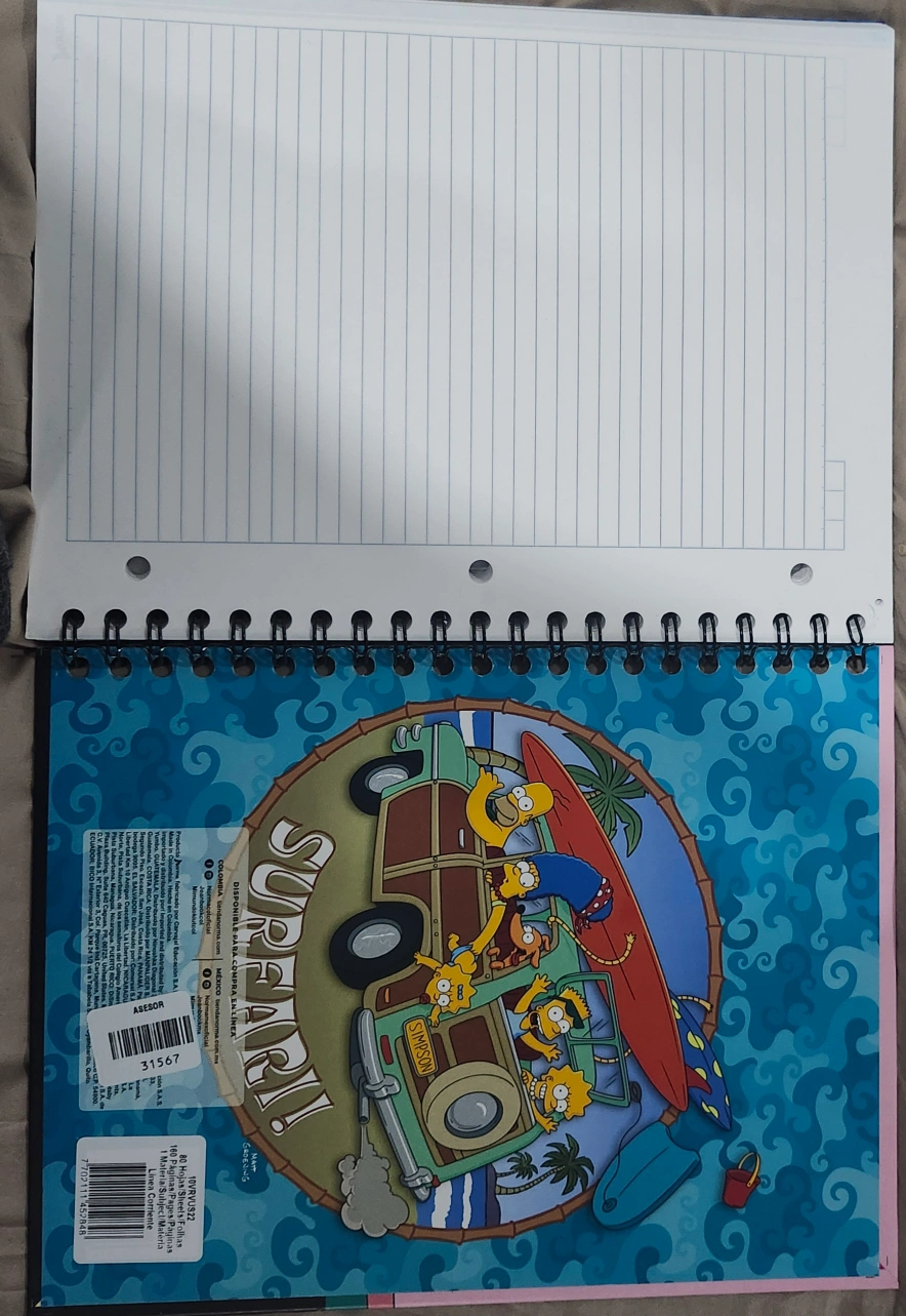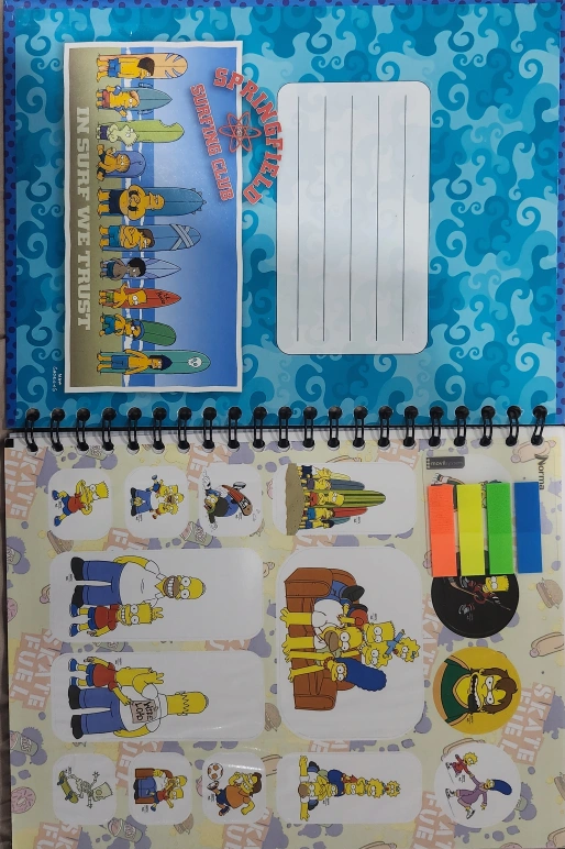 Four spiral-bound notebooks. Featuring Simpsons designs. Includes Bartman, Surfing Club, and family scenes stickers. Lined paper. New, never used.