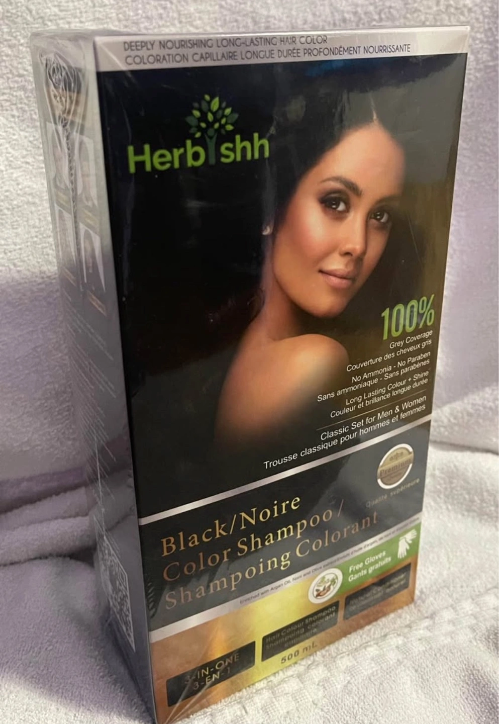 Black hair color shampoo. 3-in-1 formula. Natural conditioner. 100% grey coverage. Ammonia and paraben free. For men and women.