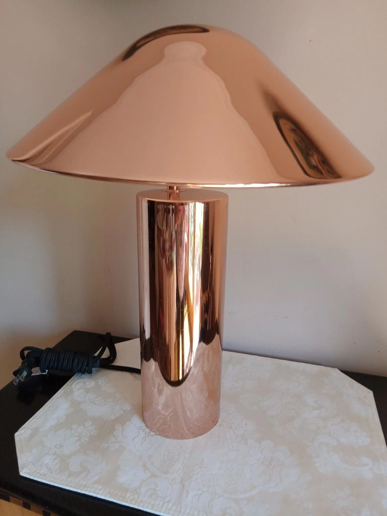 Stylish copper table lamp. Wide, shallow shade. Modern design. Includes cord and plug. Original price 650. By Alchemy Designs price in negotiable!!!