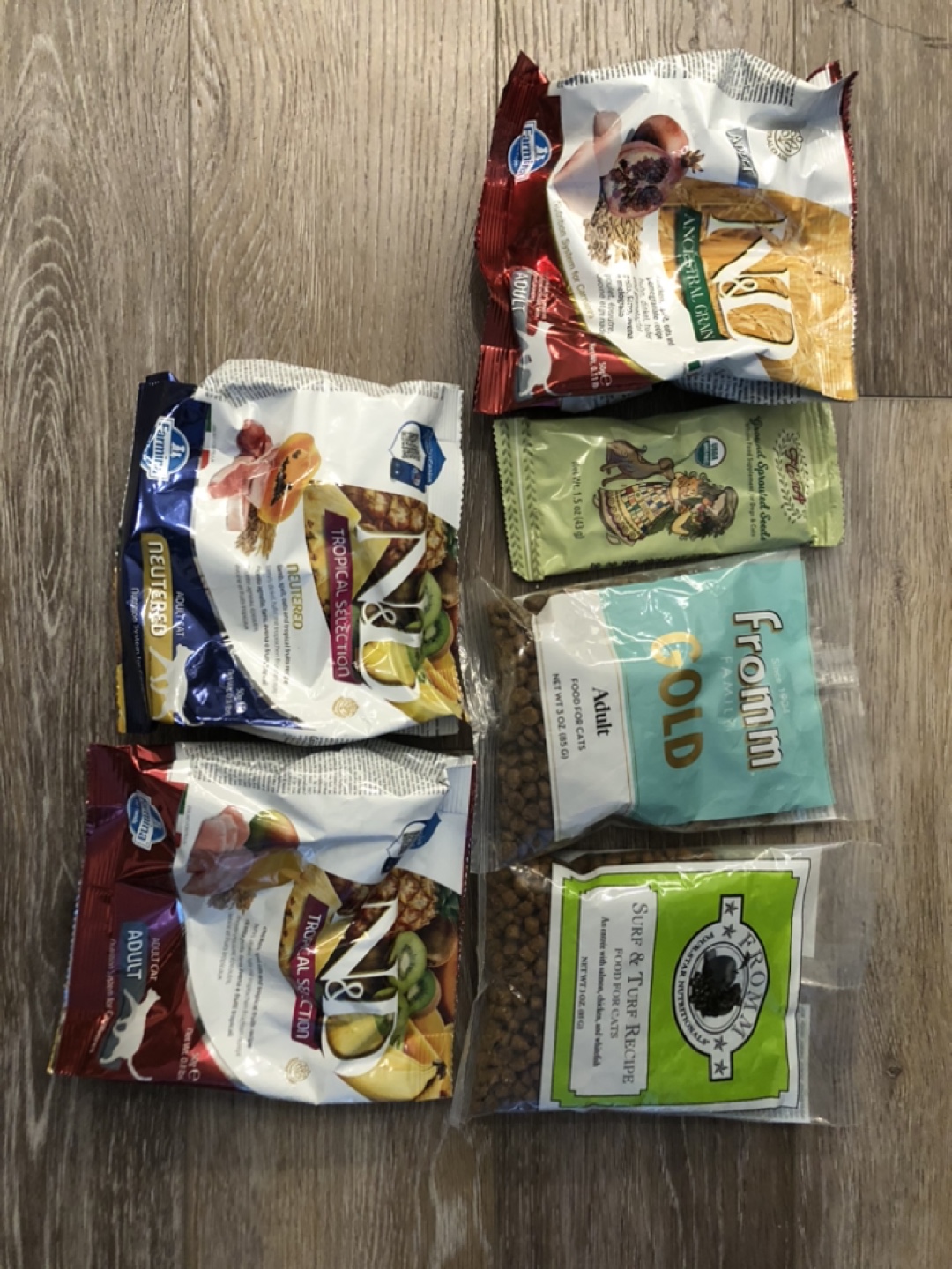 Several bags of healthy cat food, various flavours and types of adult cat formulas. Bags are unopened. I checked the expiration dates and they are not expired.