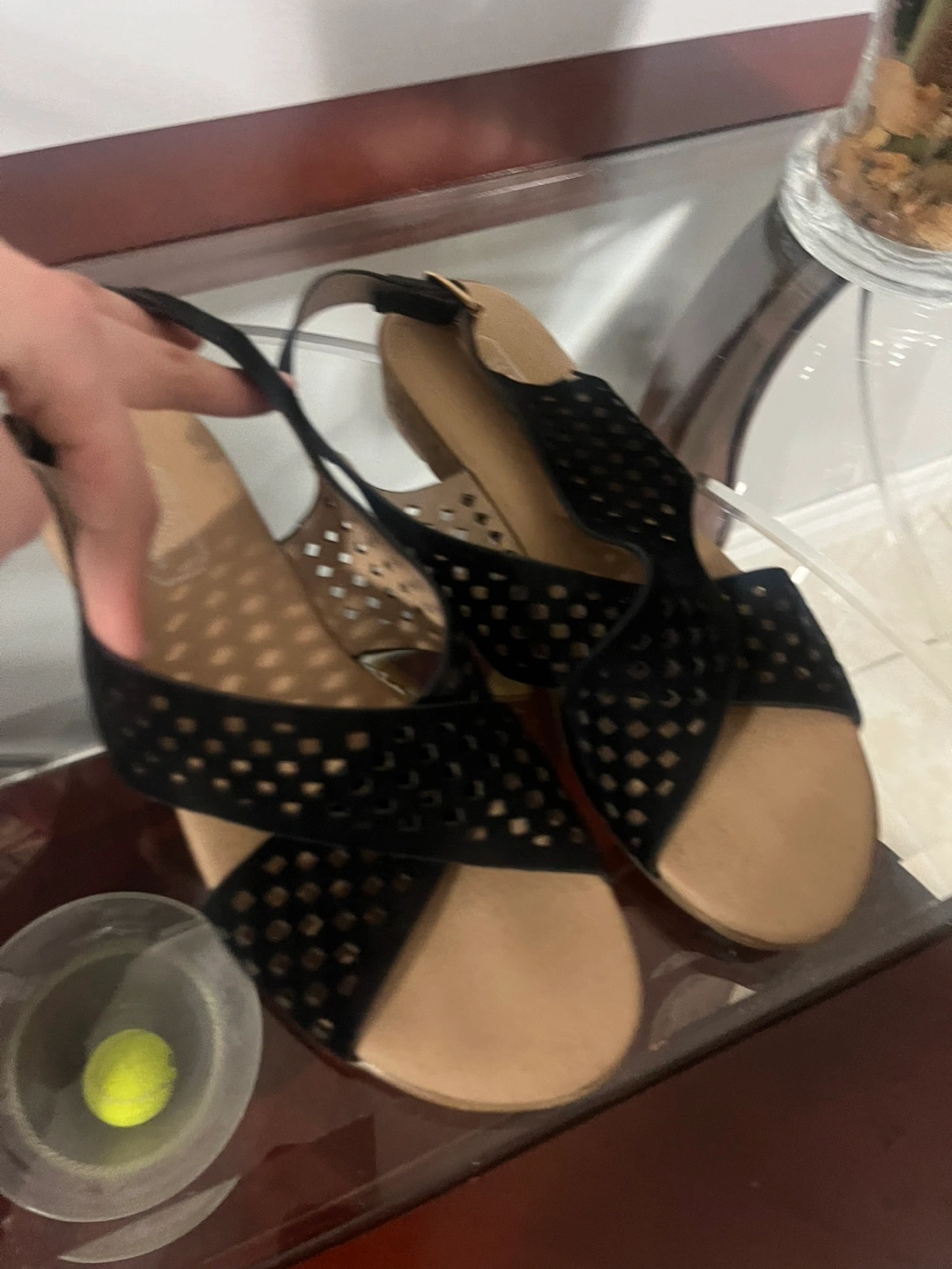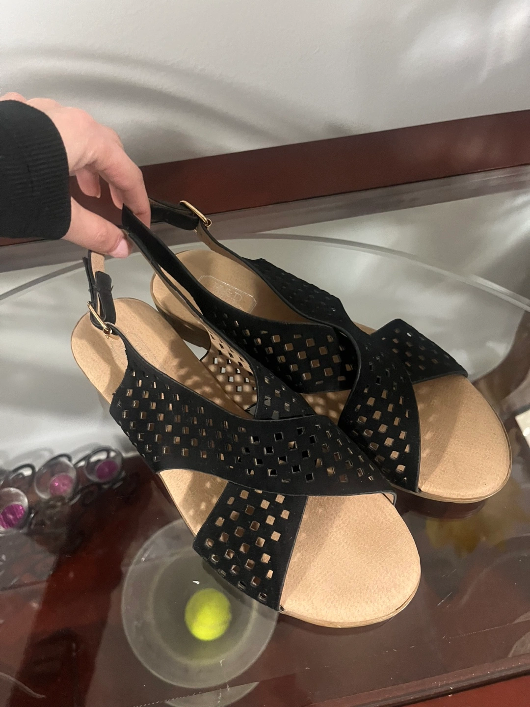 Black Perforated Sandals, Size 8
