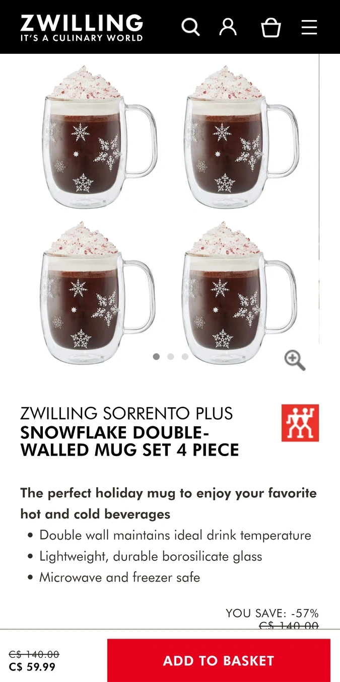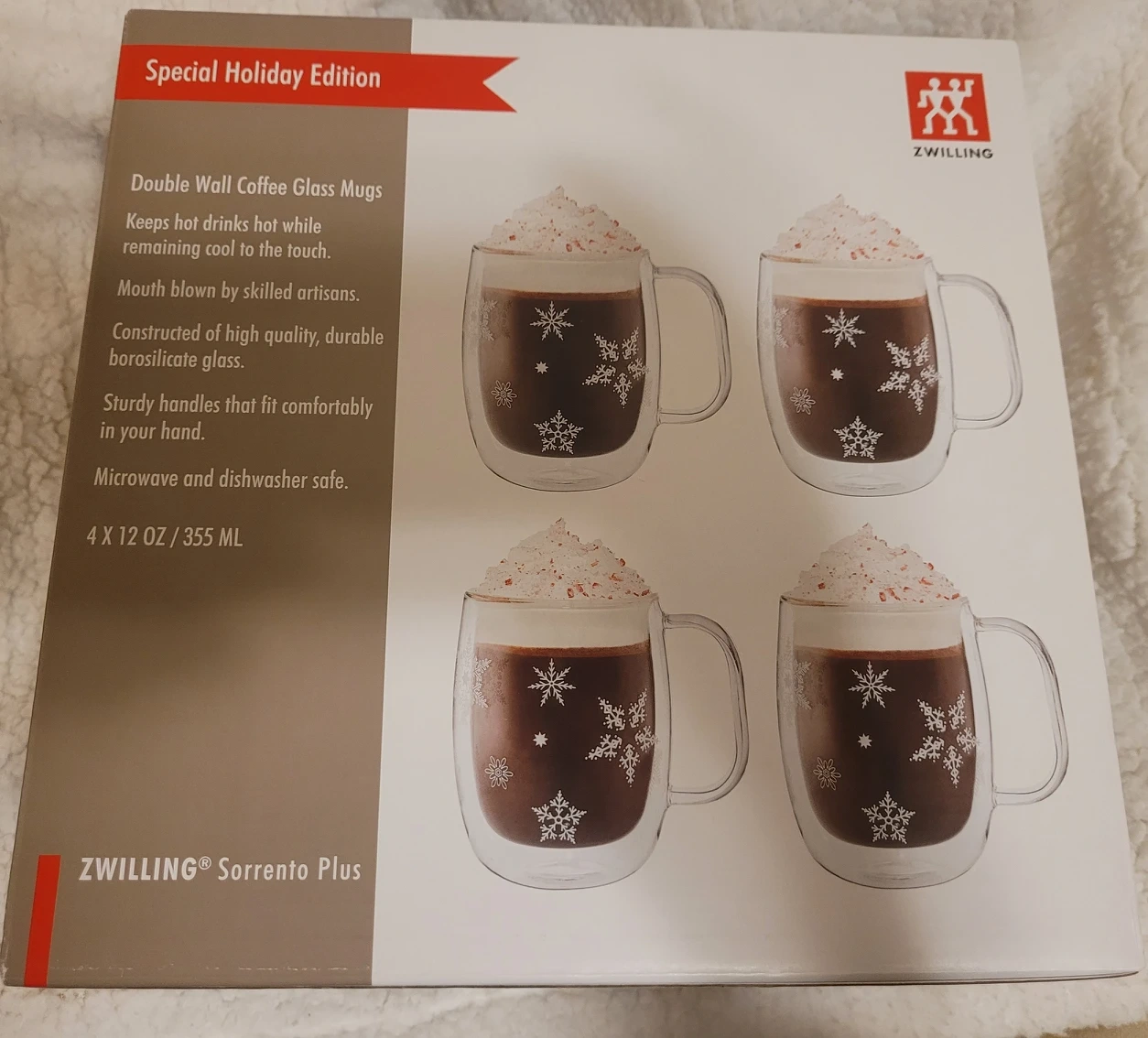 brand new in box Zwilling double wall glass mug, set of 4.