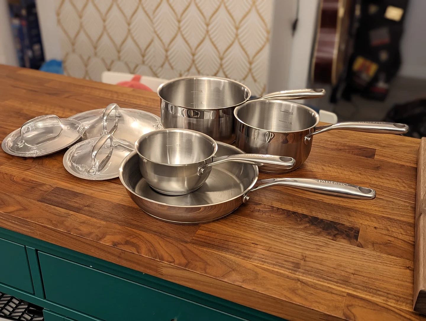 Includes three Saucepans (1.3 L, 2 L, 3 L), 2 L Sauté Pan, and 3 Stainless-Steel Lids