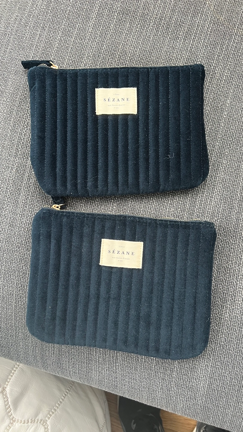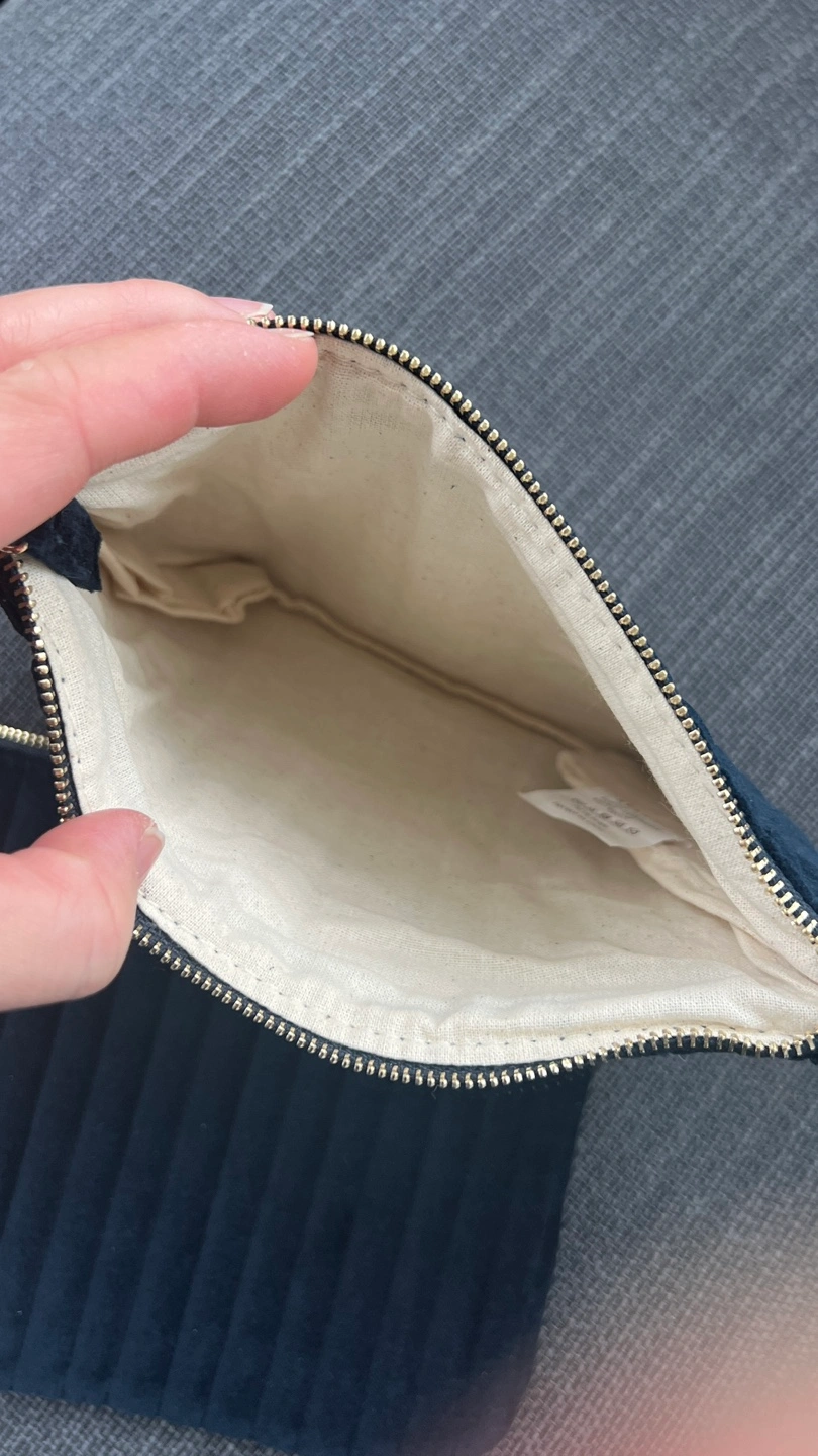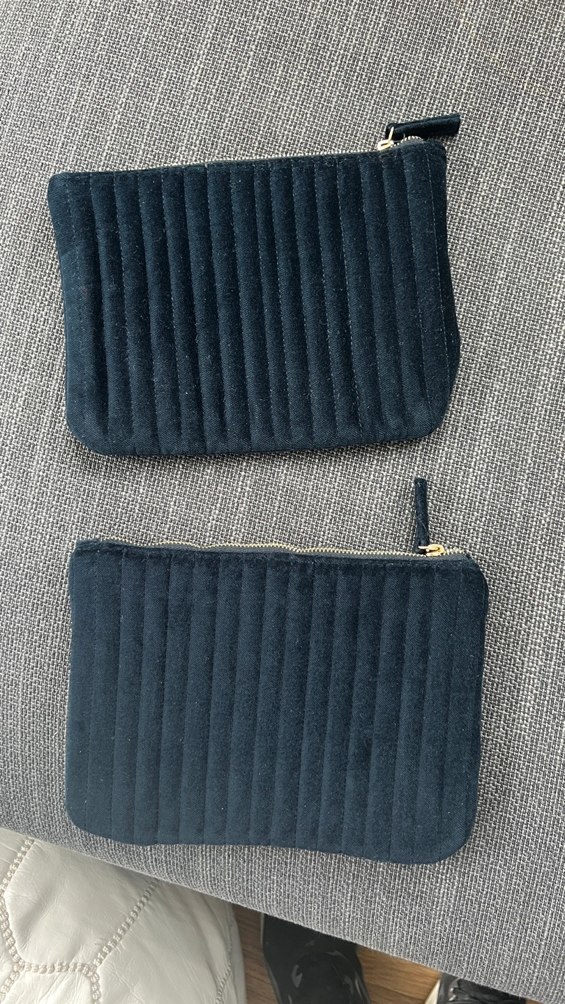 382Two black velvet zipper pouches. Quilted design. Small size. Perfect for travel or organizing. $25 each