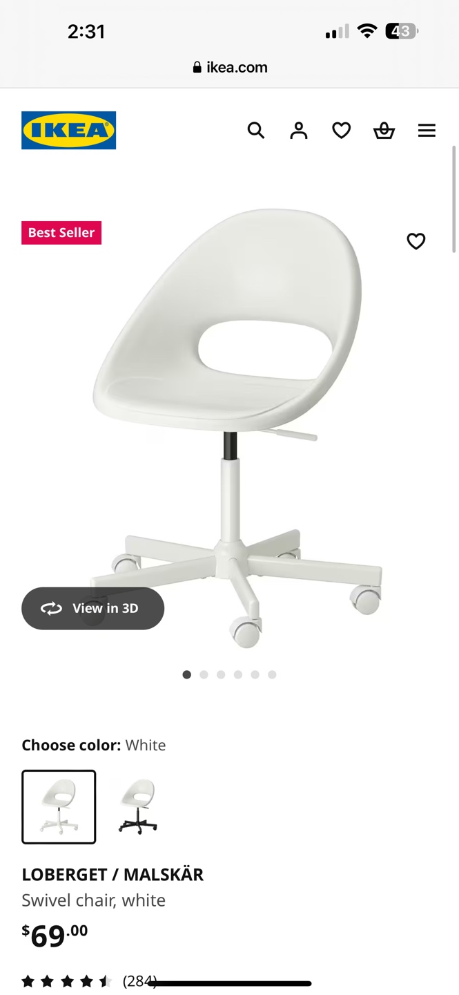 1 / 21 / 2Buy & SellIKEA LÖBERGET/MALSKÄR Swivel Chair - WhiteIKEA LÖBERGET/MALSKÄR Swivel Chair - White$40White swivel chair, good condition. Five-star base with casters. Lightweight and easy to move.WHERE TO MEETYonge and EglintonView MapSELLEROlgaYonge Eglinton12411 reviews2 chats·0 favorites·24 viewsSEND CHAT TO SELLERHi Olga! I’m interested in your listing.Hi Olga! I’m interested in your listing.Get the Karrot app to chatSign In to chat