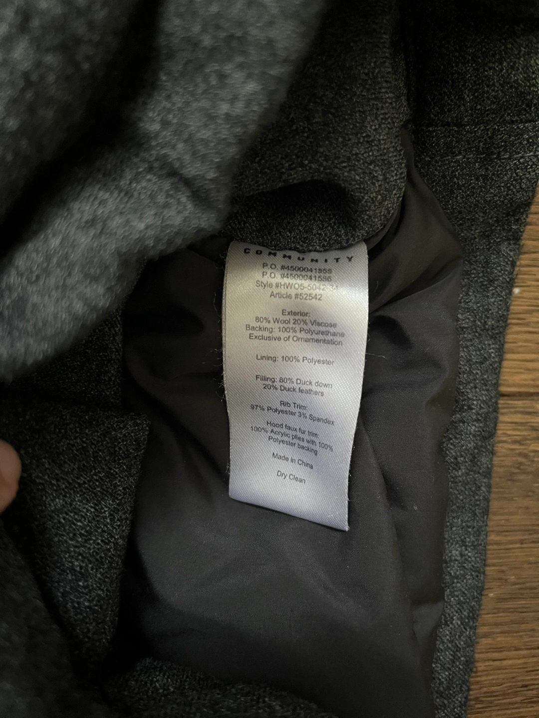 Warm winter parka. Features a faux fur-trimmed hood, multiple pockets, and a down filling. Size small. Good condition.