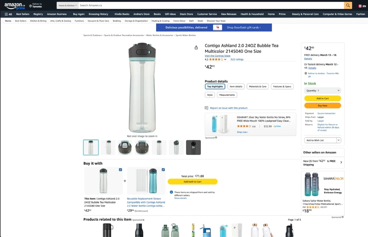 Contigo Ashland 2.0 24OZ Bubble Tea Multicolor 2145040 One Size Water Bottle