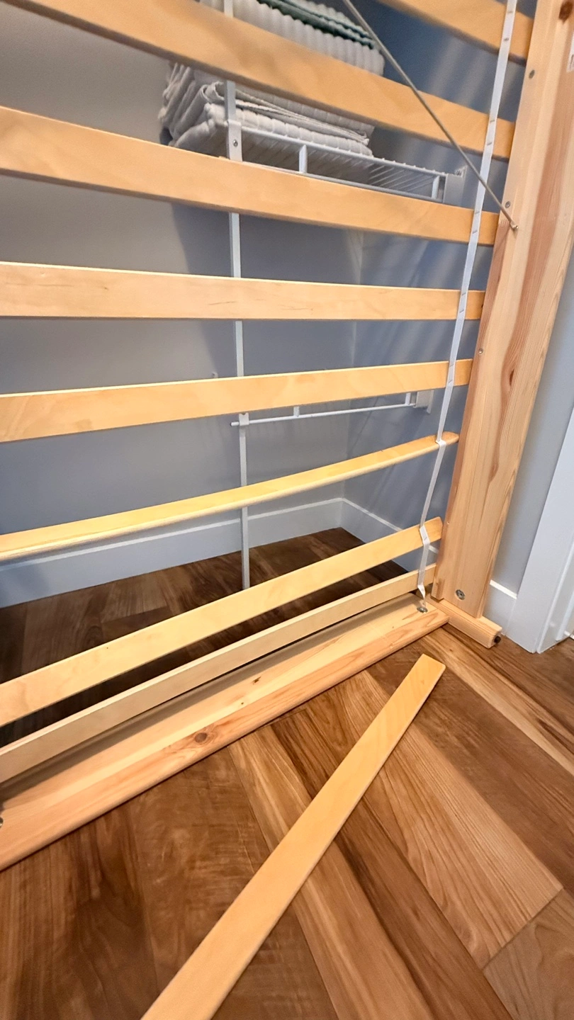 Great condition, one of the slats have come off, can be reattached with a staple gun but can also just be placed in position and doesnβt move when the mattress is placed on top.