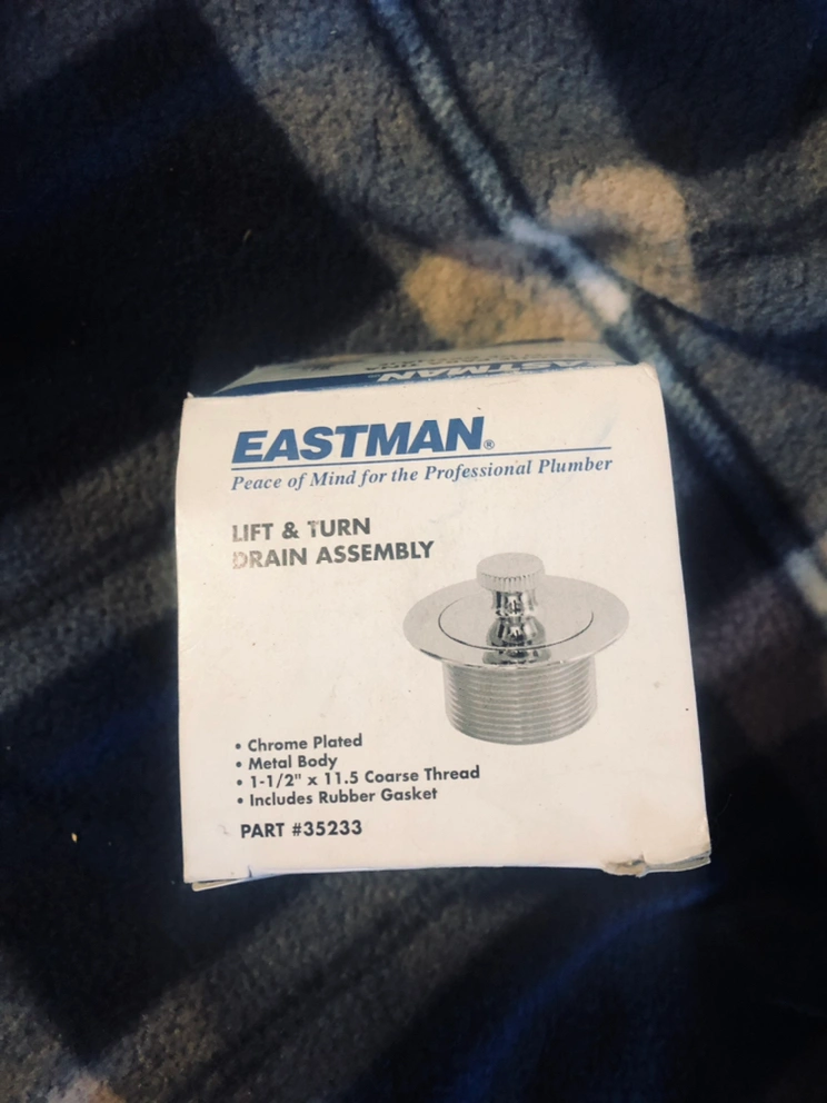 One brand new, Eastman lift and turn Drain Assembly. Metal-Chrome Plated, with rubber gasket included (shown in photos). BRAND NEW, IN BOX! 10/10 condition never once used.